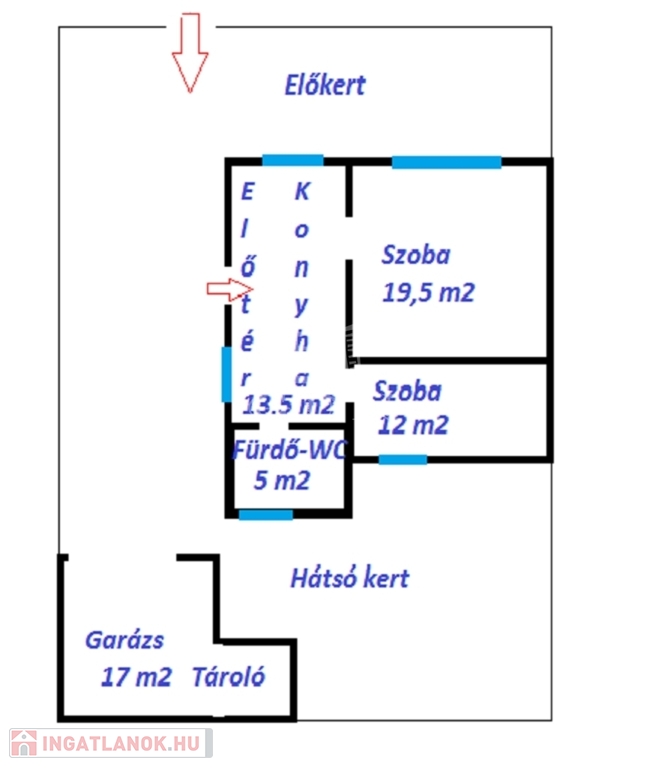 A házhoz tartozik egy 17 m2 garázs+tároló.