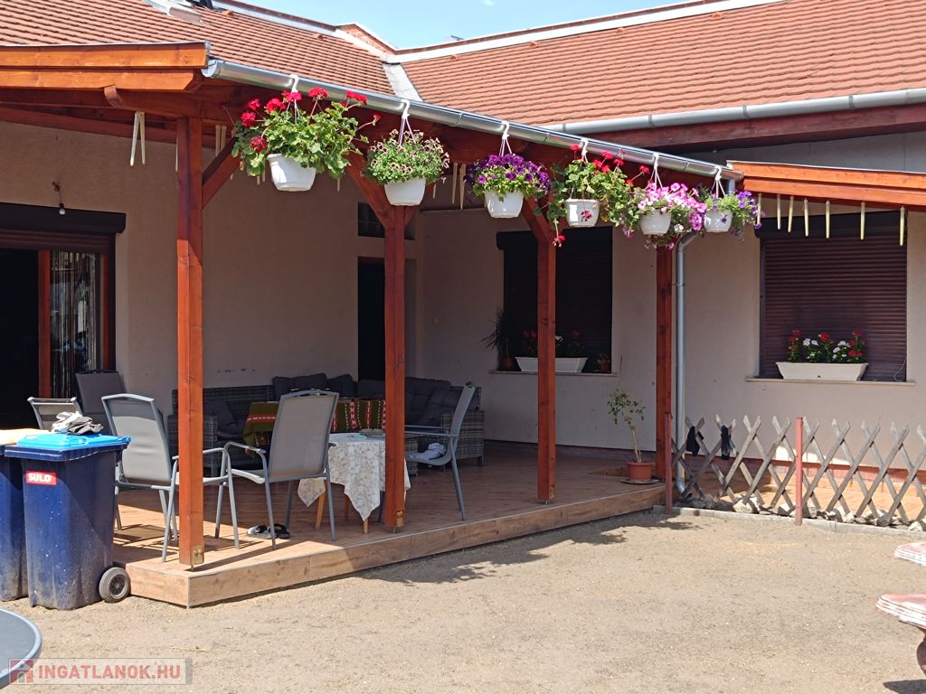 A ház előtt nagyméretű, --2024-ben Újonnan épített-- látványos, fedett TERASZ !