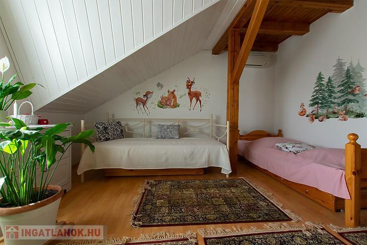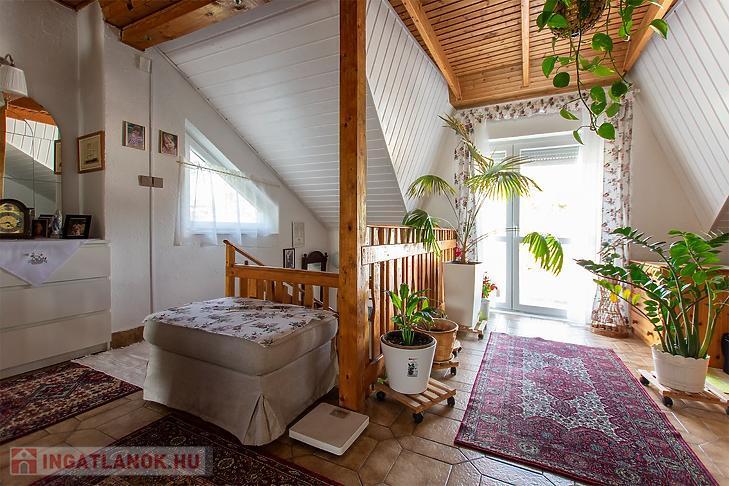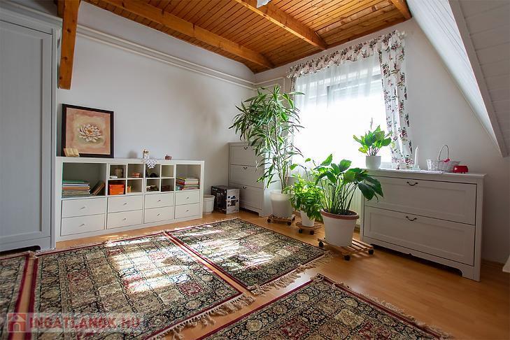Az ingatlan 4 és fél szobával rendelkezik, 2 és fél szobával a földszinten és 2 külön nyíló szobával az emeleten. Az emeleten 45 négyzetméteres nappali rész fogad minket, ahol akár egy külön konyha is kialakítható könnyedén. Így akár rövid időn belül 2 generációssá is formálható az ingatlan. Az emeletről egyből ki tudunk sétálni a kerti teraszra.