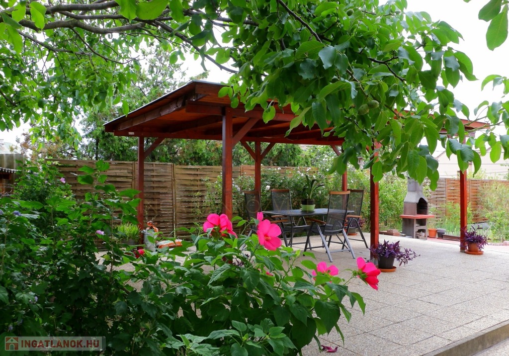 A 639 m²-es telek szépen használható, zöld környezetet biztosít, ahol minden adott a kikapcsolódáshoz: