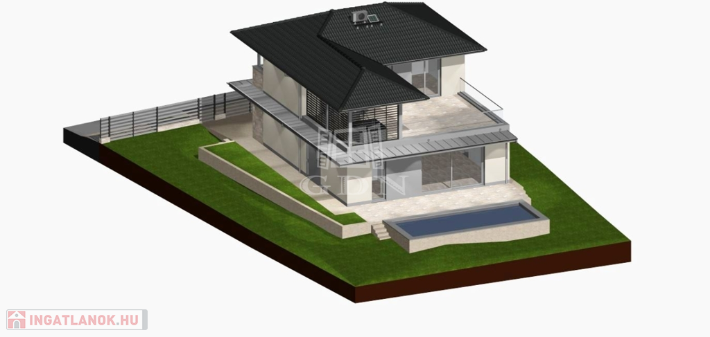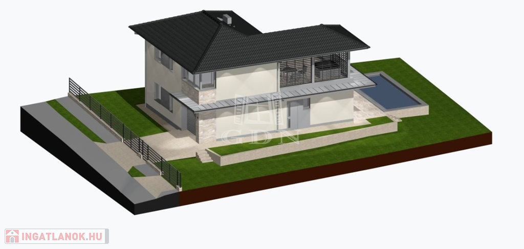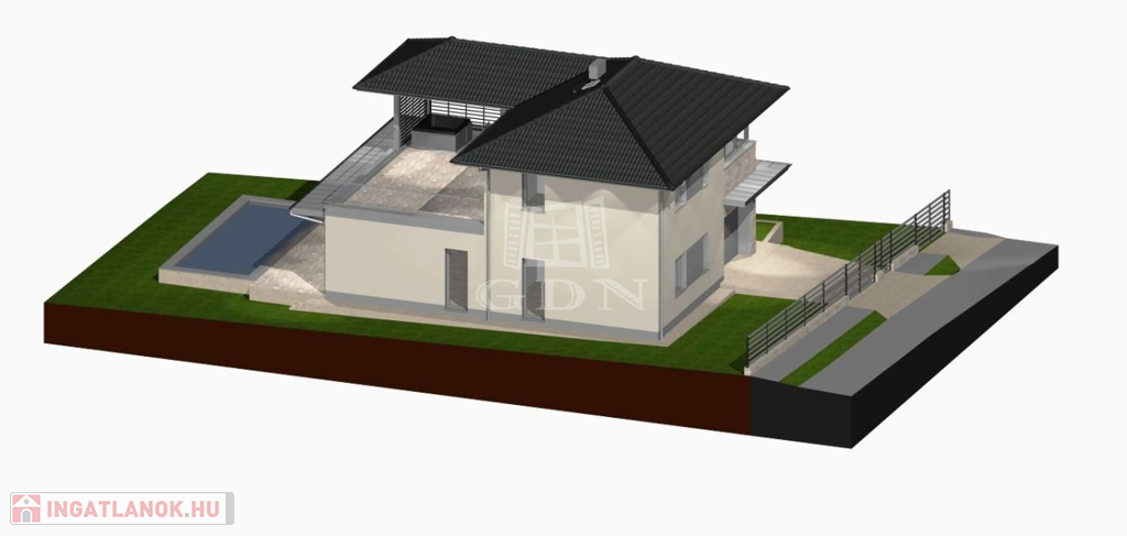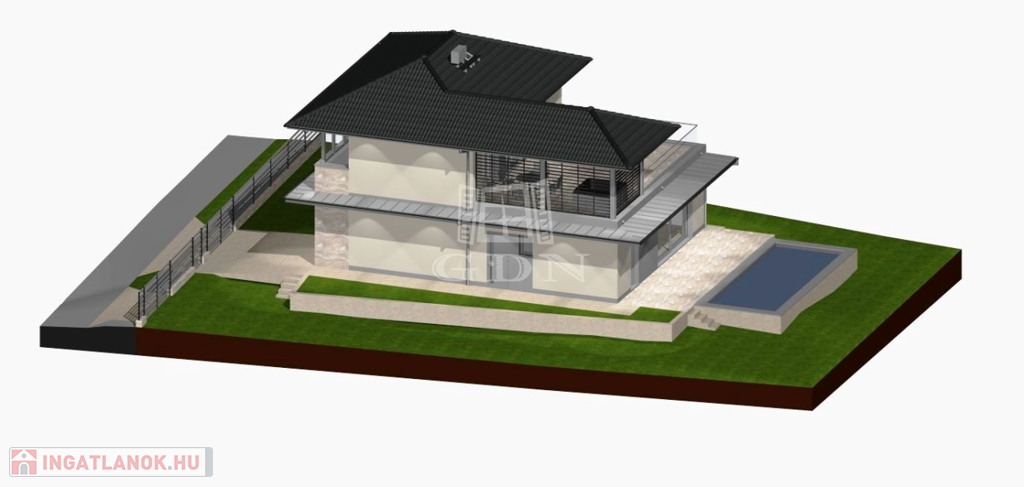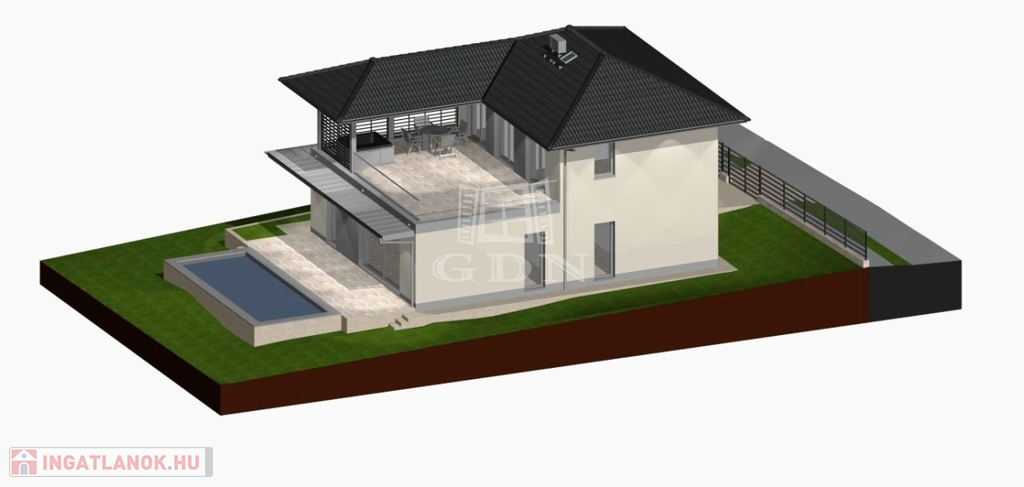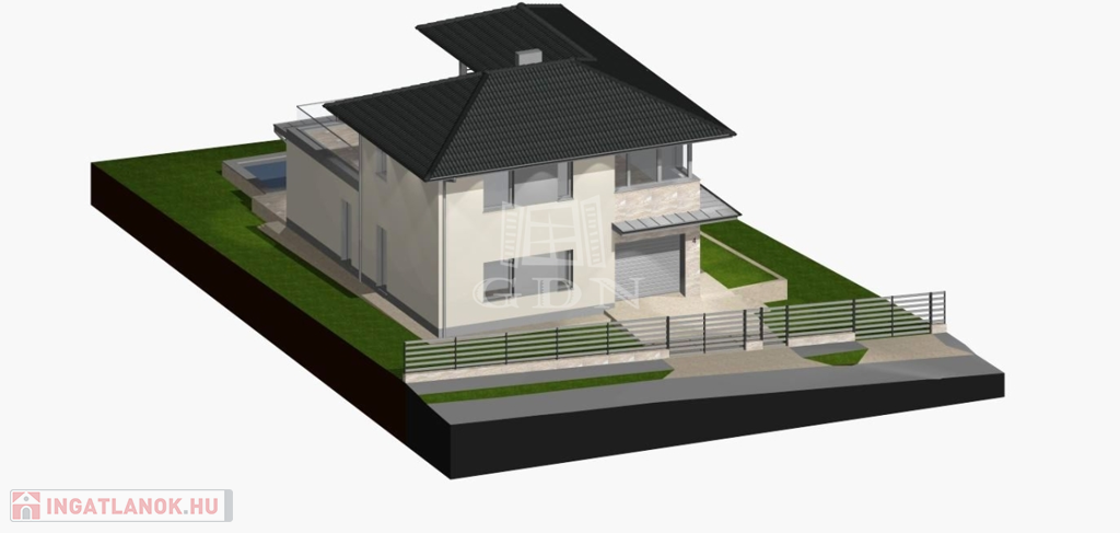 Az INGATLAN 544 m²-es, PRÉMIUM minőségű TELEKRE épült, a hasznos alapterület 174 m²-es amelyben egy AMERIKAI KONYHÁS NAPPALI +4szoba és 3 fürdőszoba TEREMT KÉNYELMES ÉLETTERET.