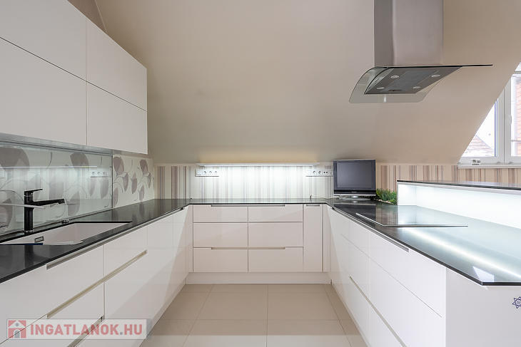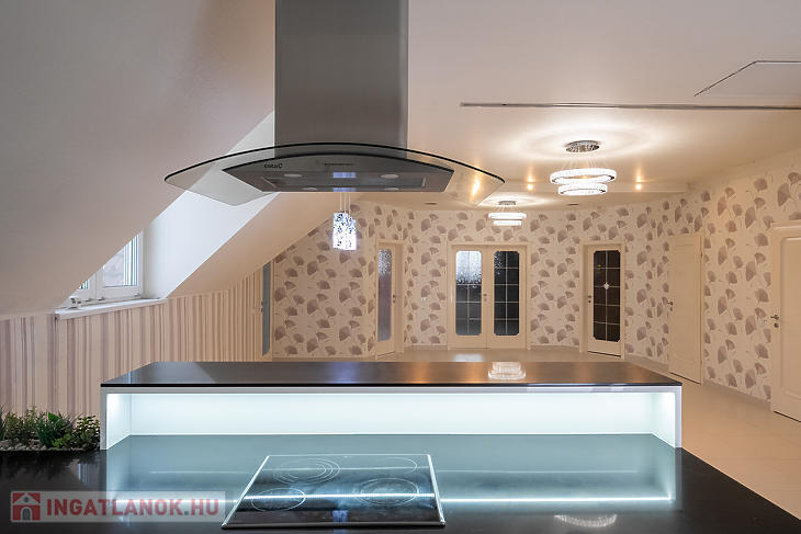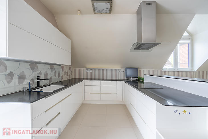 Az ingatlan tégla szerkezetű, beton födémmel, külső falai szigeteltek. A ház alapterülete 319 m², amelyből a földszint 169 m², emelet 150 m². A belső terek tágasak, világosak, harmonikus arányokkal. A lakótér központja a 67 m²-es amerikai konyhás nappali, amely elegáns megjelenésével ideális a mindennapi családi élethez és a reprezentatív vendéglátáshoz egyaránt.