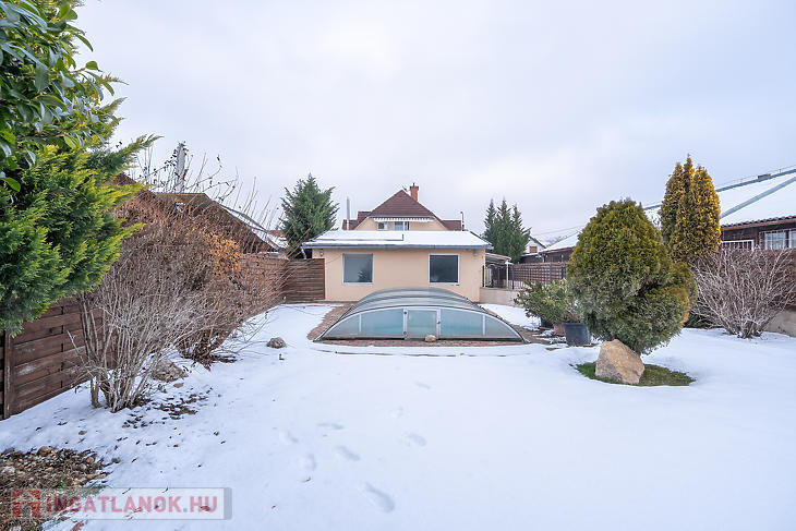 A 764 m²-es, gondozott telken az exkluzív életérzést tovább erősíti: