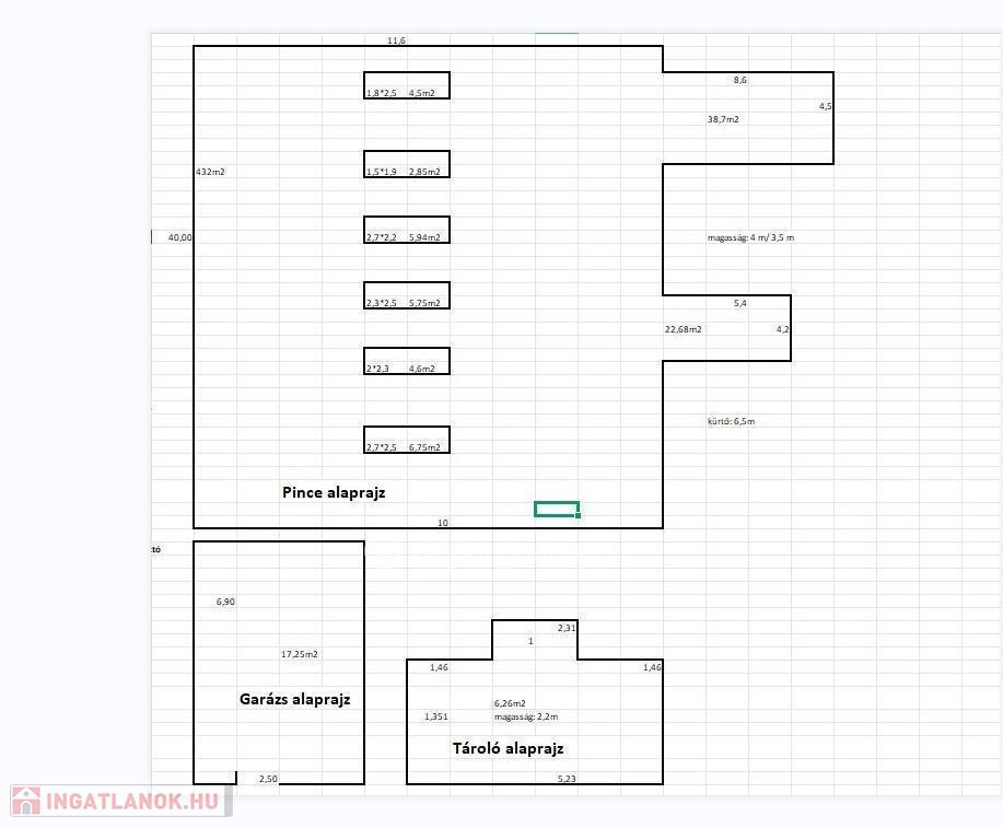 - Alapterület: földszint + kb. 500 nm pince