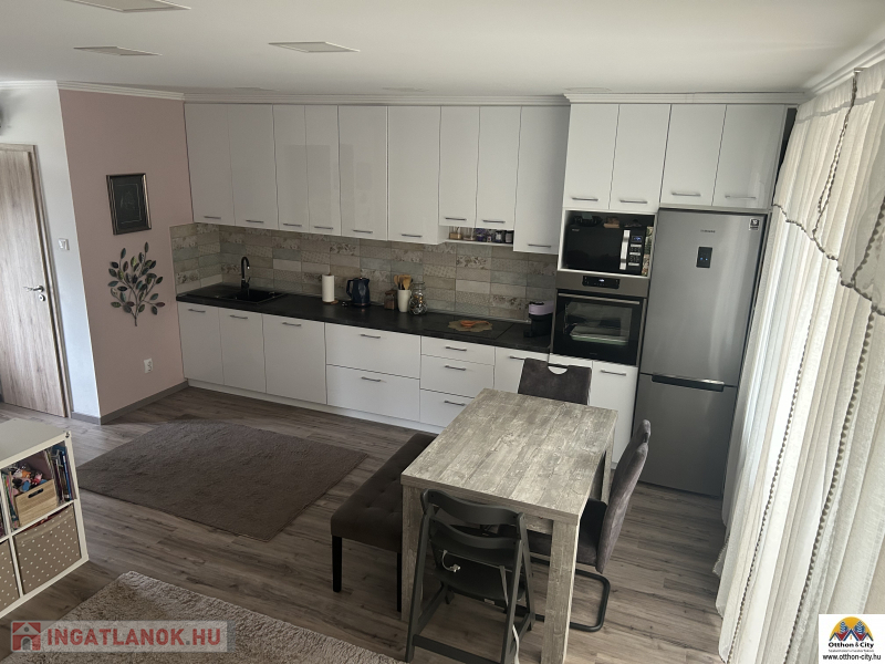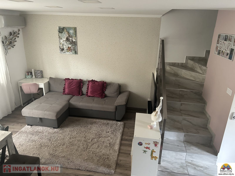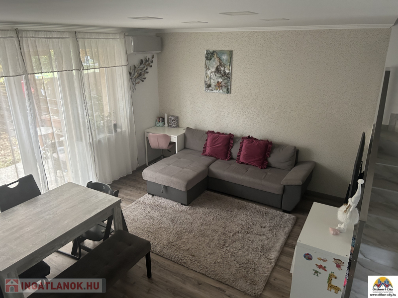 Ez a két szintes, 70 négyzetméteres ingatlan 2020-ban épült, újszerű állapotban. A lakásban három jó méretű szoba található, ahol mindenki megtalálhatja a saját kis világát. Az összkomfortos otthonban a fűtést korszerű, gázkonvektorok biztosítják, a 15 cm szigetelés pedig segít a rezsi költségek csökkentésében, ami csak 25 000 forint körül van. A légkondícionálásnak köszönhetően nyáron is kellemes a hőmérséklet.
