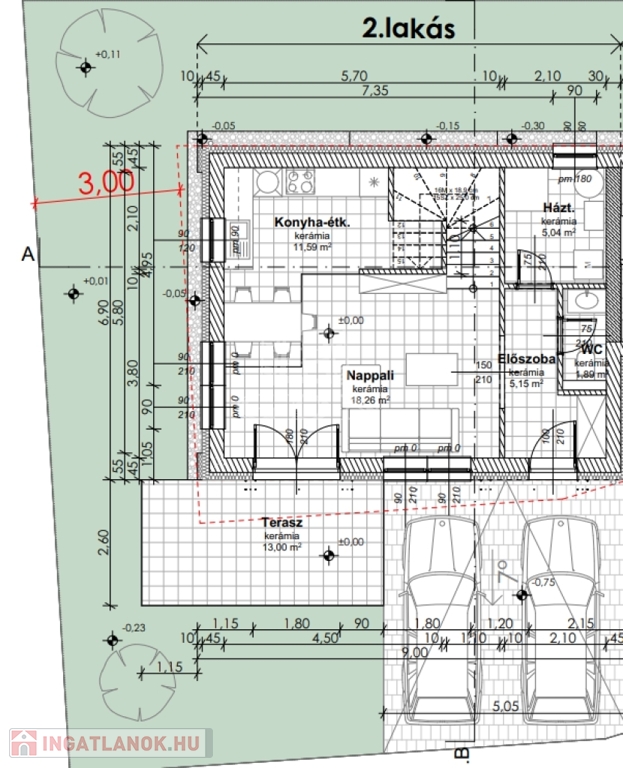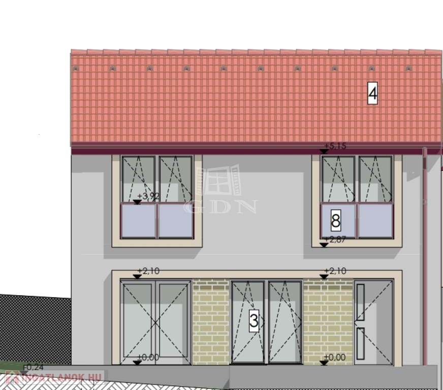 Az ingatlan leköthető 2 db. gépkocsibeállóval - igény szerinti befejezéssel.