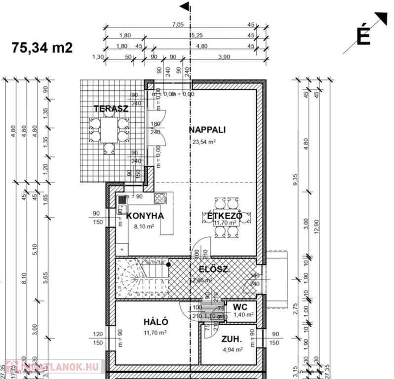 MÉRETEK, ELRENDEZÉS, TÁJOLÁS, TELEKMEGOSZTÁS AZ ALAPRAJZOKON LÁTHATÓ!