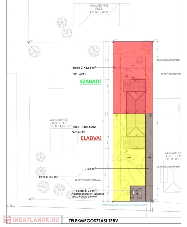 Az eladásra kínált ikerházhoz tartozó SAJÁT kizárólagos használatú telekrész pedig 452 m².