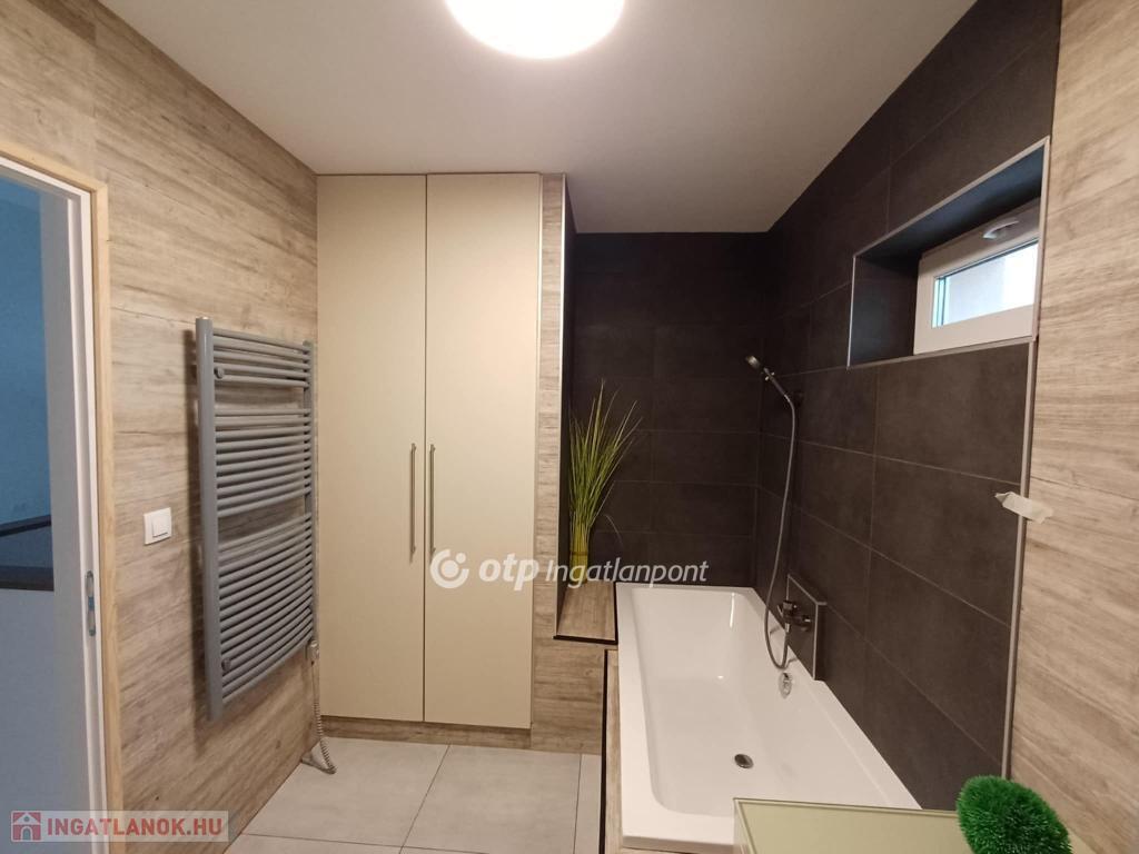 Kertvárosban, csendes környéken, jó ízléssel megépített, igényes, napfényes, berendezett konyha-étkezővel ellátott lakás saját - még alakításra váró - kertrésszel. Az épület kétszintes (földszint + emelet), a hátsókertben tartozik hozzá egy összesen két gépjármű elhelyezésére alkalmas fedett-nyitott tároló is. Maga a lakás a földszinten tágas konyha-étkezővel és egy hálóval, valamint zuhanyzós fürdővel és külön wc-vel rendelkezik, míg az emeleten egy nagy, kertre néző teraszos nappalival és egy másik hálóval épület. A nappali délkelet-délnyugatra tájolt, a terasz keleti tájolású. A háló mellé még egy fürdő-wc tartozik. A két szintet elegáns lépcső köti össze, a jól szerkesztett és szépen megvilágított belső lépcső kevésbé fiatal lakóknak is kényelmes közlekedést biztosít. A lakásba egy burkolt teraszról léphetünk be, erről áttekinthetjük a saját kertrészt is.