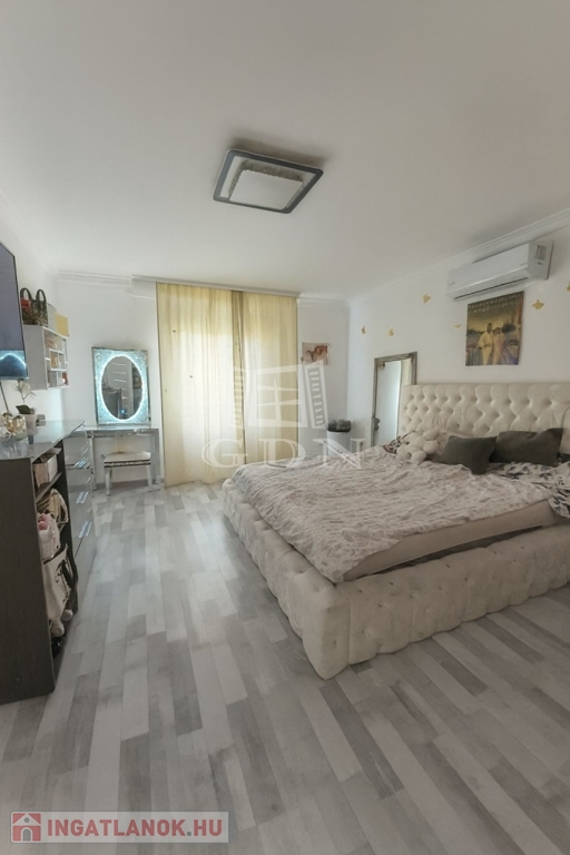 Az egyik hálószobához tartozik még egy zuhanyozós fürdőszoba WC-vel és egy gardrob szoba.