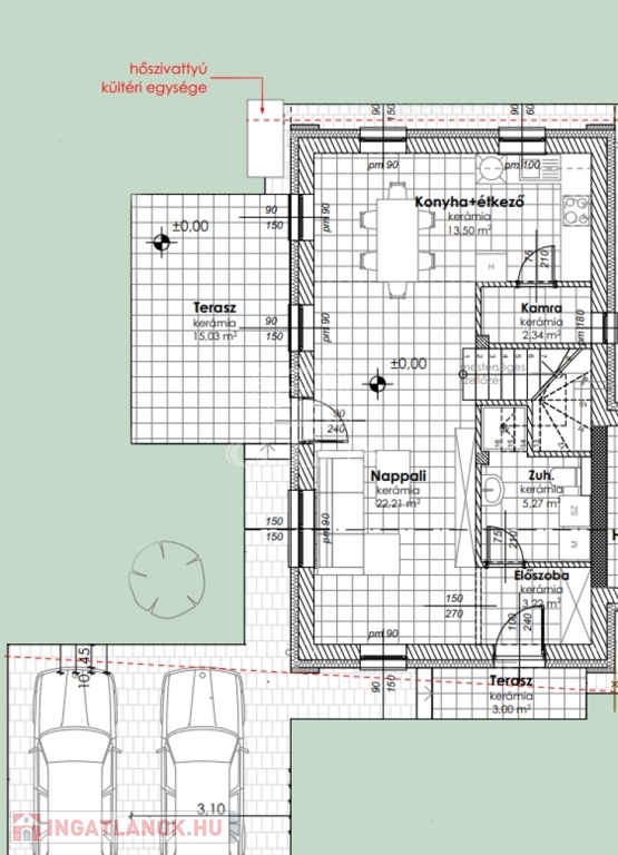 Fűtés: Az épület fűtését hőszivattyús rendszer látja el, minden helyiségben padlófűtés található.