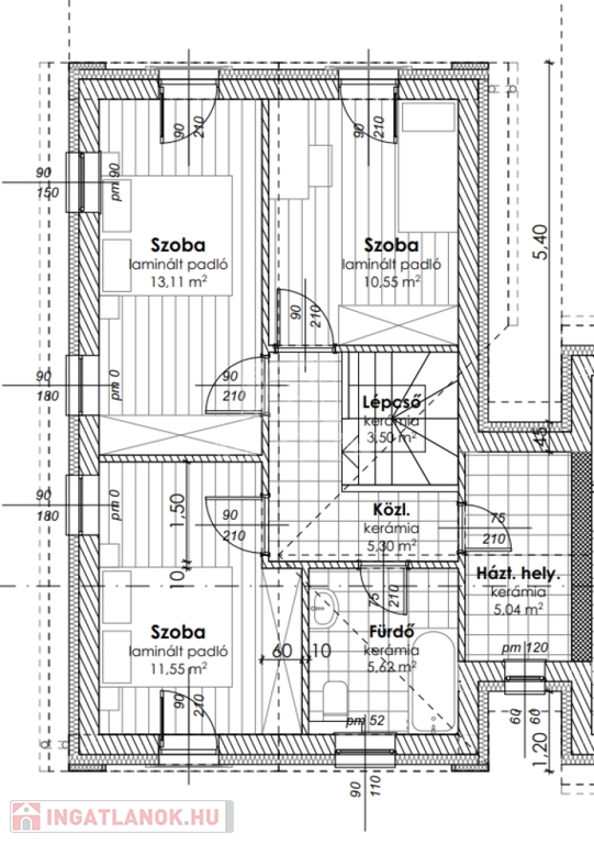 • 3 szoba 13.11 m2, 11.15 m2, 10.55 m2