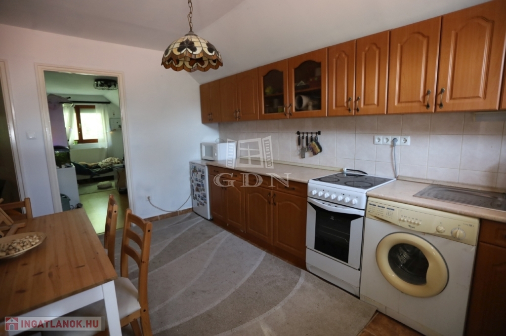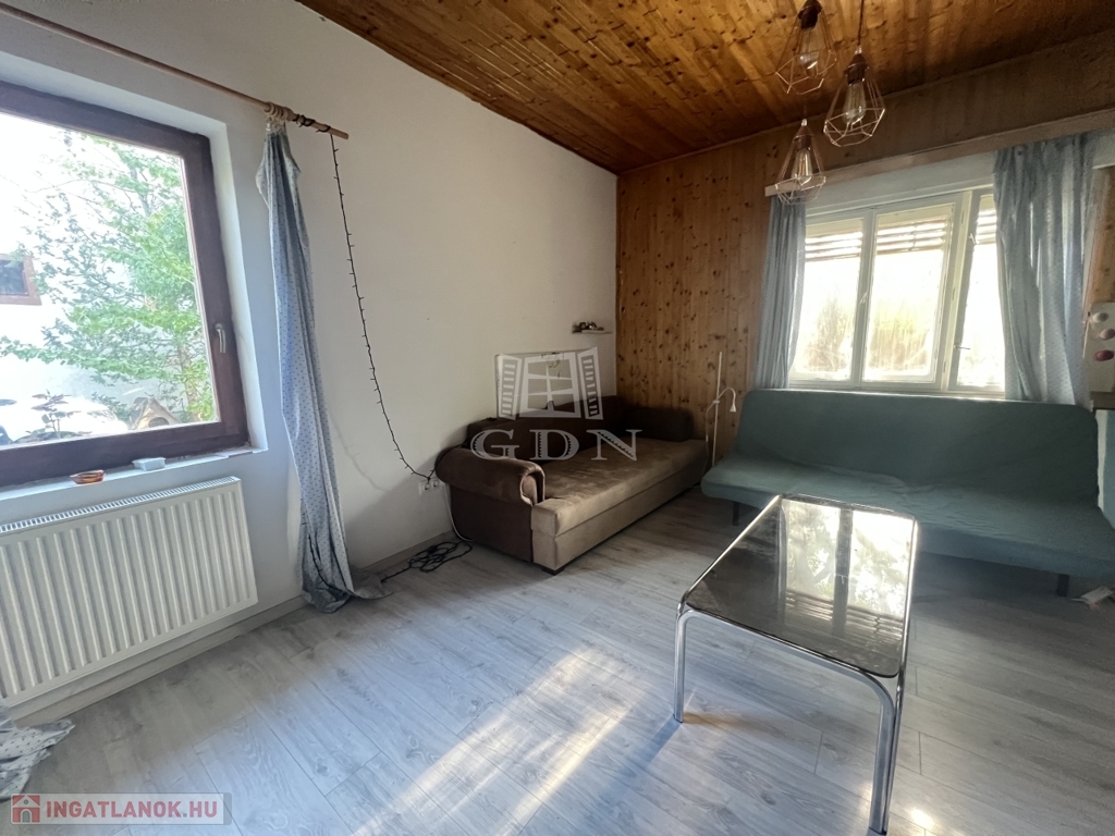 A földszinti lakótérben két nagy méretű szoba, egy közlekedő, egy zuhanyzós fürdőszoba, külön WC, valamint egy konyha található, amelyből közvetlen kijárat nyílik a fedett teraszra, illetve további 2 db. helyiség is van amely hall funkciót illetve a másik helyiség pedig télikert vagy dolgozó / félszoba kialakítási lehetőséget is biztosíthat, jelenleg pihenő részként funkciónál.