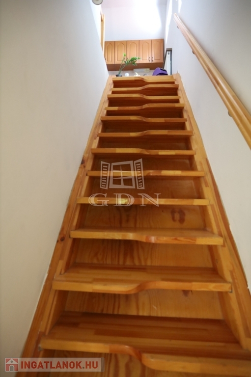 Az emeletre az előtérből vezet fel a lépcső, ahol két további szoba, egy konyha és egy fürdőszoba kapott helyet. A tetőtéri részben további plusz szoba kialakítására is van lehetőség a fürdőszoba mellett, jelenleg egy légtér ( padlástér) .