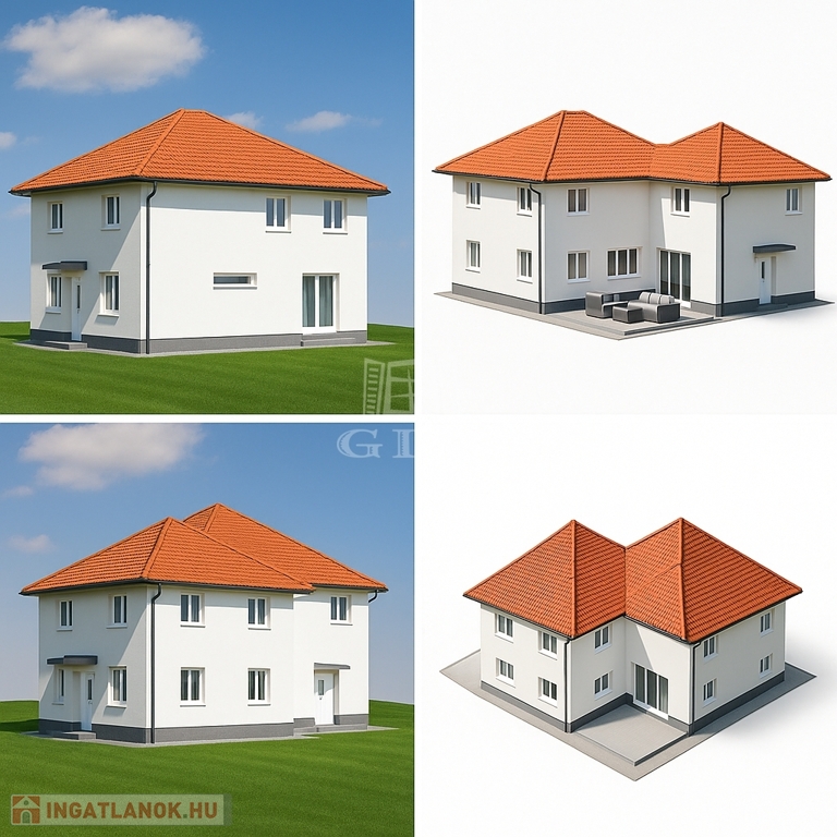 MODERN, HŐSZIVATTYÚS, ÚJÉPÍTÉSŰ, KULCSRAKÉSZ IKERHÁZ zöld környezetben.