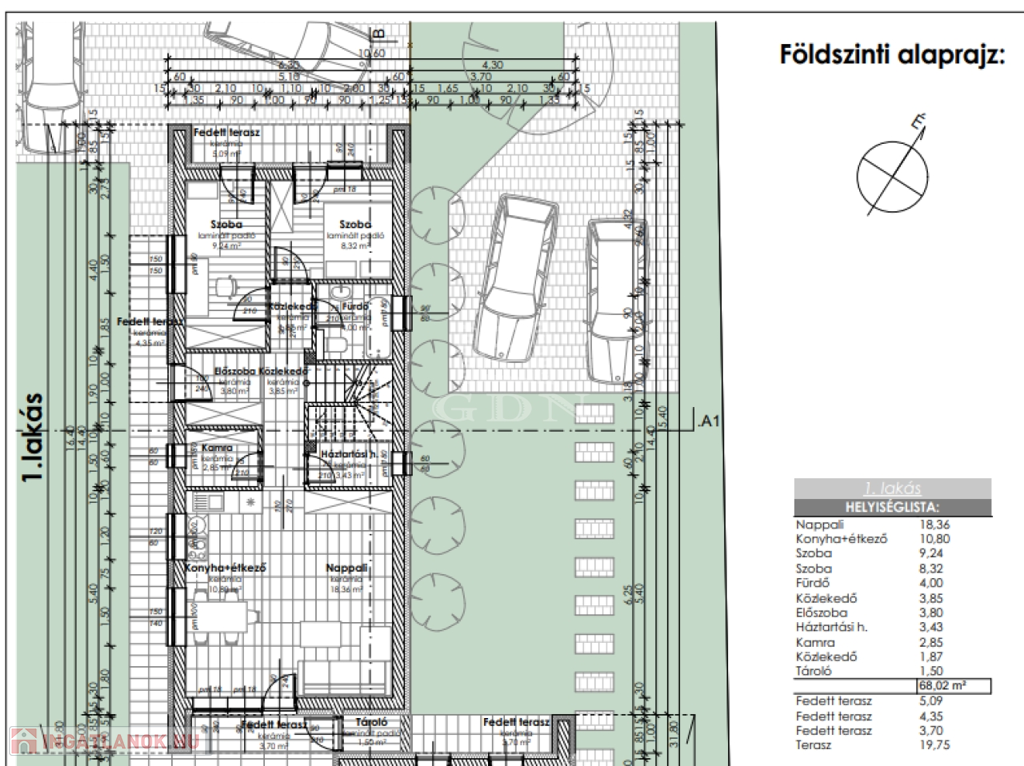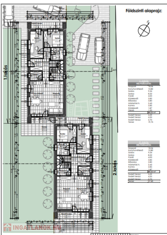A lakásokhoz gépkocsi beálló és 500 m2-es kertrész tartozik.