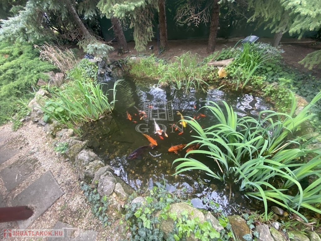 -kerti tárolókkal, sütőhellyel, kerti tóval, medencével rendelkezik