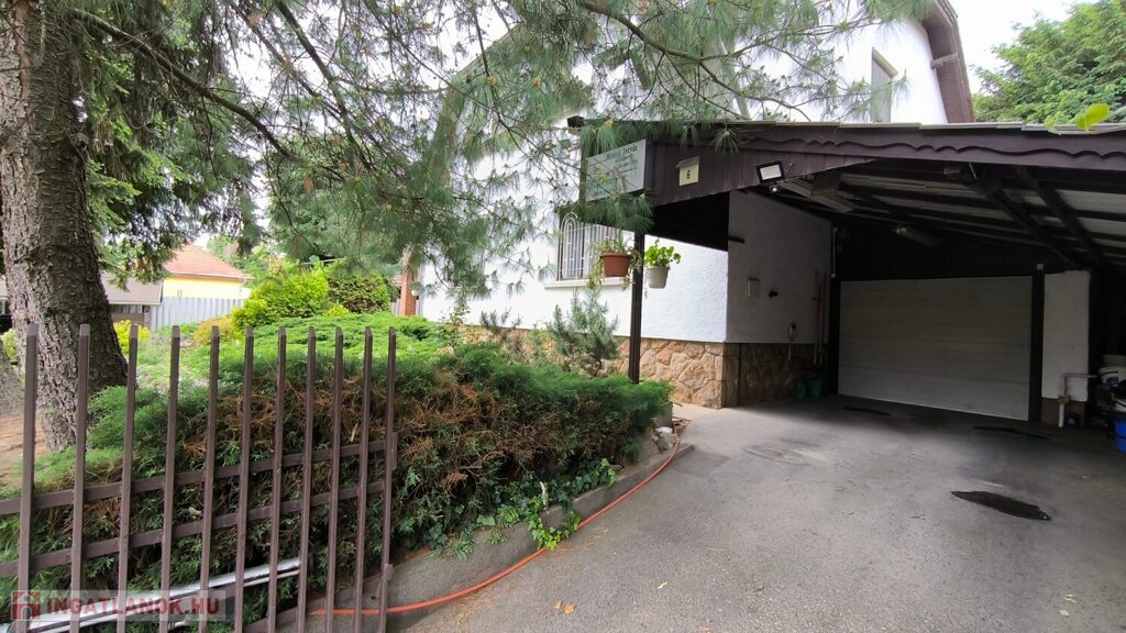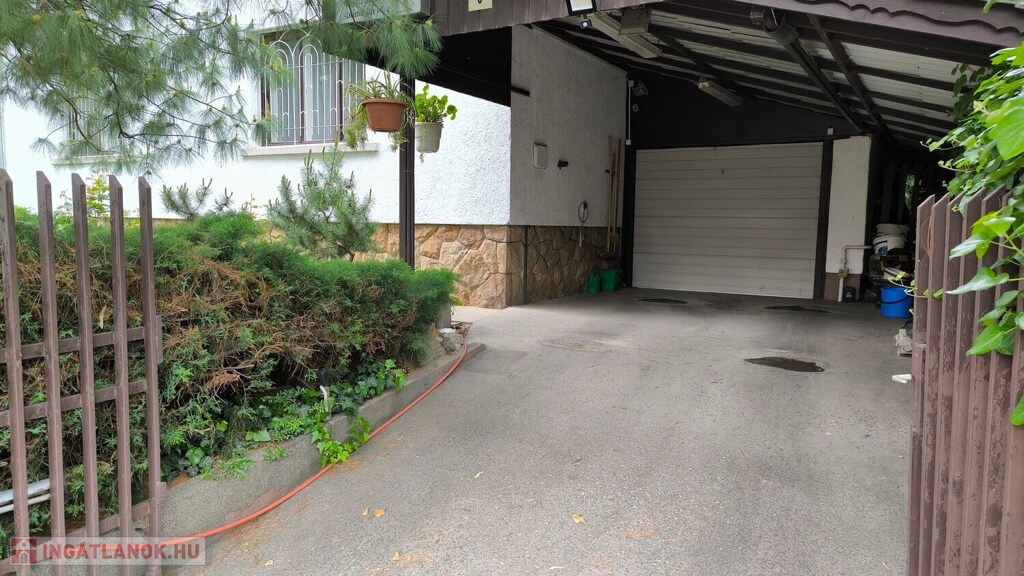 Parkolás – zárt garázs és két fedett beálló a kertben.