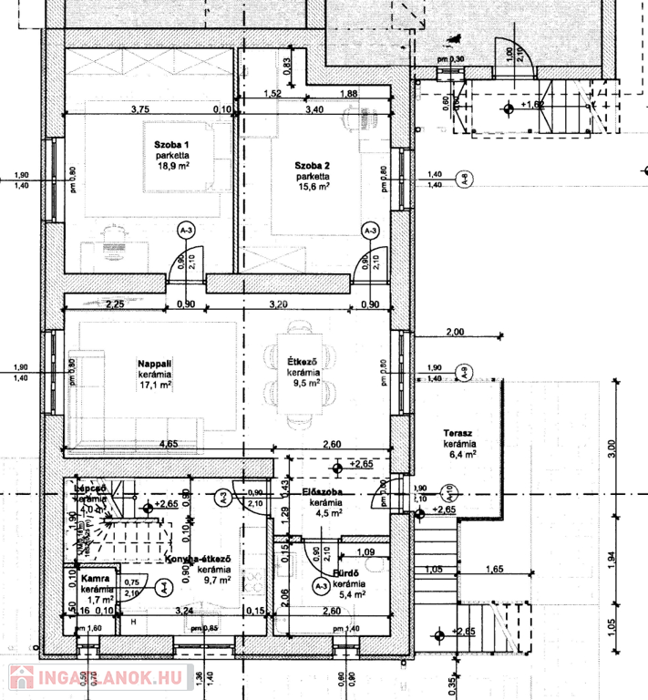 HELYISÉGEK ELRENDEZÉSE, MÉRETEK AZ ALAPRAJZON LÁTHATÓ!