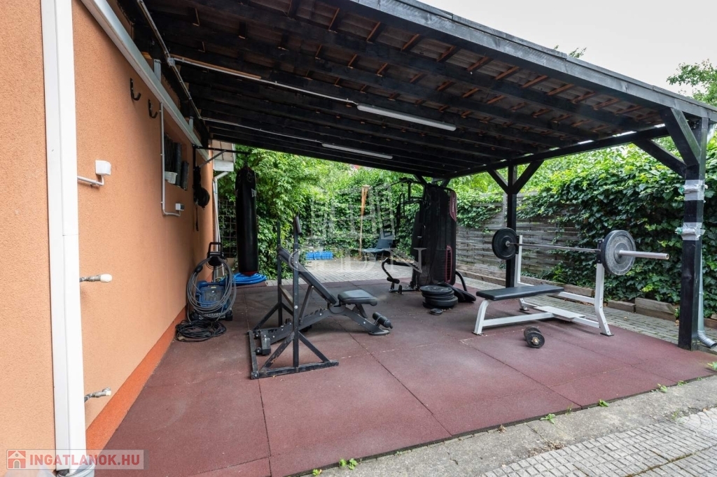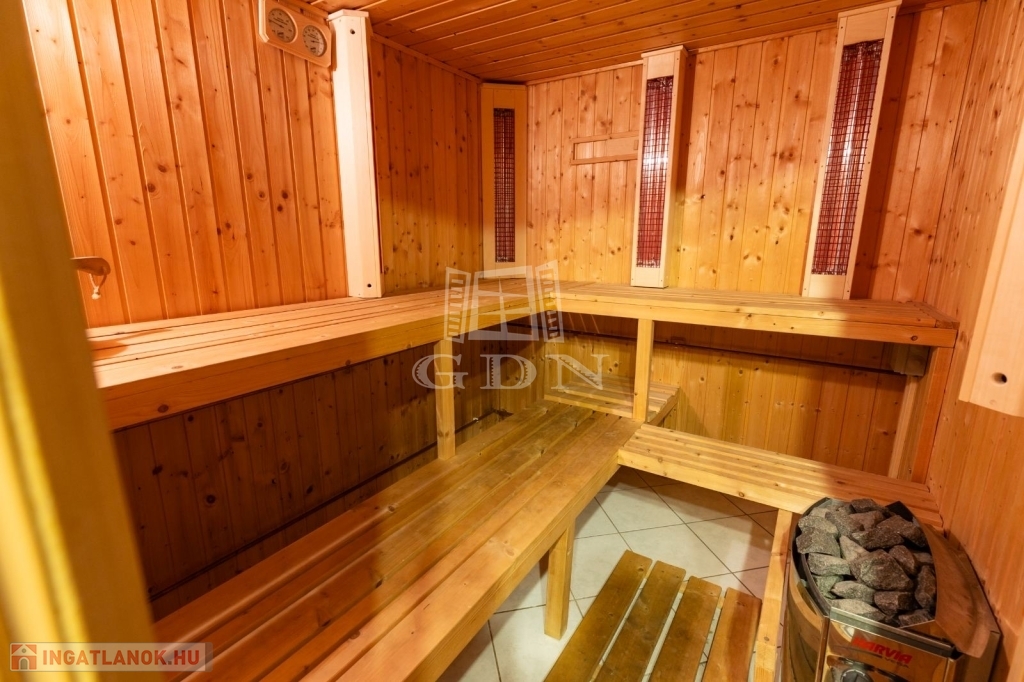 A wellness kedvelőinek a házon belül található még egy infra és finn szauna is. A kertben egy gépészettel ellátott medence, jacuzzi, kültéri fedett edzőterem. Kerti partik, családi, baráti összejövetelek tarthatóak.
