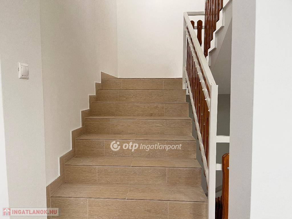 - Felső szint: 3 szoba, amerikai konyhás nappali, fürdő + WC, külön WC