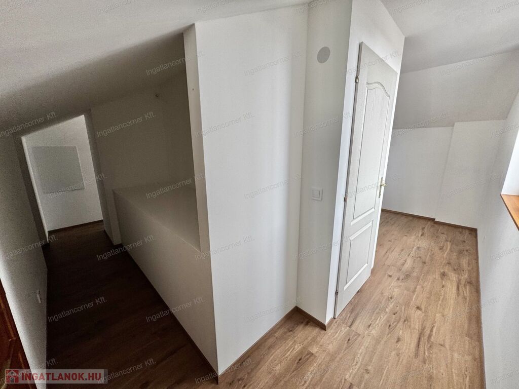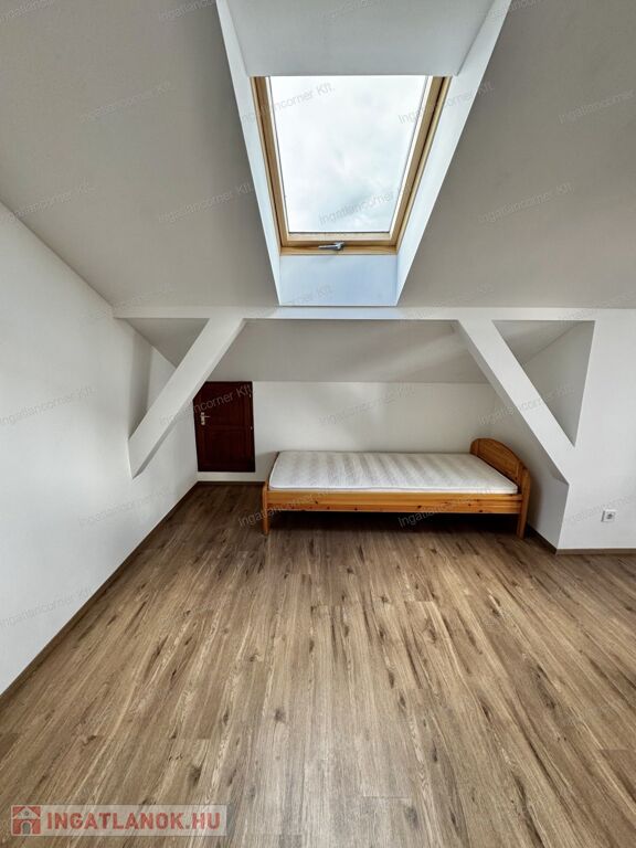 Elrendezését tekintve kiváló: előszoba, nappali, zuhanyzós + WC-s fürdőszoba, konyha, kamra, az emeleten szintén fürdőszoba káddal és WC-vel, 2 hálószoba, gardrób, még egy emelettel feljebb pedig hatalmas szoba saját gardróbbal. A padlástér pakolható.