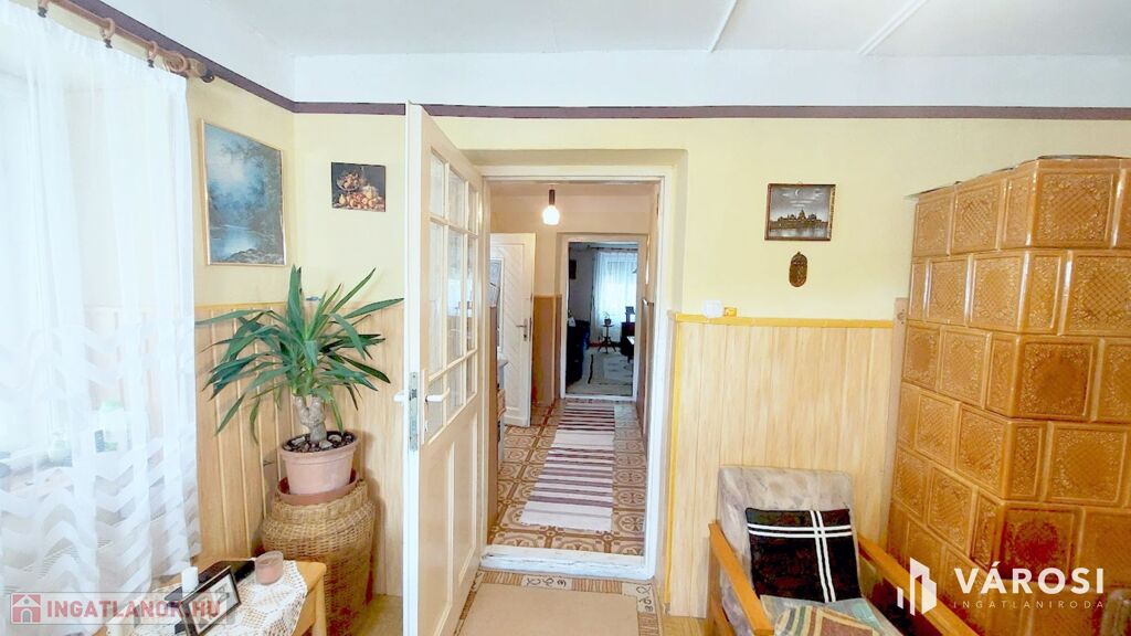 - Fűtés: vegyes tüzelésű kazán, 2 db cserépkályha, radiátoros hőleadó a fürdőben
