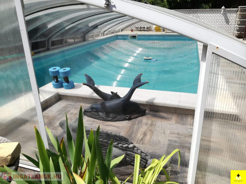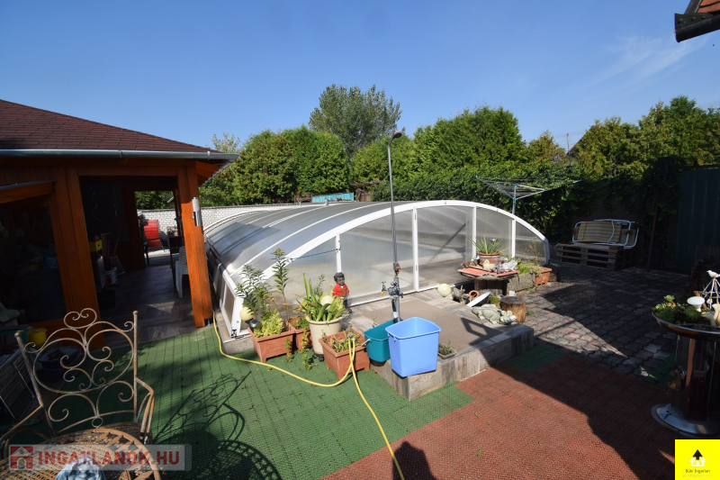 Az ingatlan ideális méretű 1360 m2-es telken helyezkedik el. A kertben 32 m2 vízfelületű medence, egy pihenőház, egy kút, egy pici kerti tó, gyümölcsfák és gondozott dísznövények találhatóak.