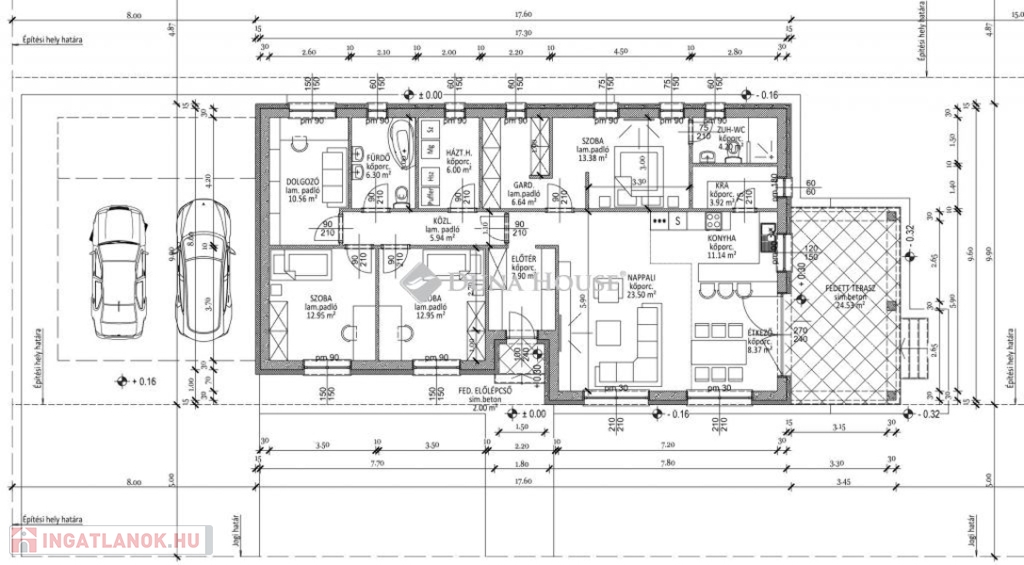 ÚJ ÉPÍTÉSŰ CSALÁDI HÁZ KULCSRAKÉSZEN Ceglédbercelen, Iskola utcában.Eladó egy 133m2-es családi ház, nappali + 4 szoba, nagy méretű, 1122 m²-es telken - az ár a telekkel együtt értendő!Ár: kulcsrakészen, terasz, konyhabútor és lámpatestek nélkülKiemelt előnyök:-ELŐFINANSZÍROZÁS lehetősége csak az elkészült ütemek után kell fizetni.-ÁRGARANCIA és kötbér vállalás a kivitelezőtől-Energiahatékony fűtés: BOSCH 3400 prémium levegő-víz hőszivattyú, vizes padlófűtéssel-3 rétegű prémium nyílászárók, választható belső burkolatok és ajtókMűszaki tartalom:Teherhordó falazat: Wienerberger Porotherm 30 N+FHomlokzati hőszigetelés: 15 cmTetőhéjazat választható: Leier Toscana tetőcserép választható színbenKülső nyílászárók: 3 réteg üvegezésű, kívül antracit, belül fehér prémium Gealan S8000 külső nyílászárók, 36 mm-es üvegezéssel + antracit, alumínium redőnyök + antracit műkő párkányVálaszfal: Wienerberger Porotherm 10 tégla válaszfalBejárati ajtó választható: Colorplast standard betéttelTeraszajtó: Dupla szárnyasBeltéri ajtó: Borovi Szicília (dekorfóliás) választható színbenHidegburkolat választható: 6.500 Ft / m2Melegburkolat választható: 6.000 Ft / m2Szaniterek választható: (kád, zuhanykabin, csaptelep stb.) 460.000Ft-igGépészet: Bosch 3400 levegő-víz hőszivattyú vizes padlófűtésselAz ár kulcsrakész állapotban történő átadással értendő, konyhabútor és lámpatestek nélkül!Közművek:Gáz: nincsVillany: ingatlanbanCsatorna: ingatlanbanVíz: ingatlanban