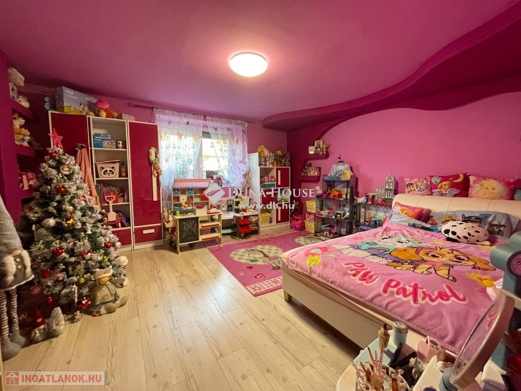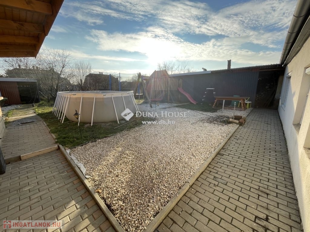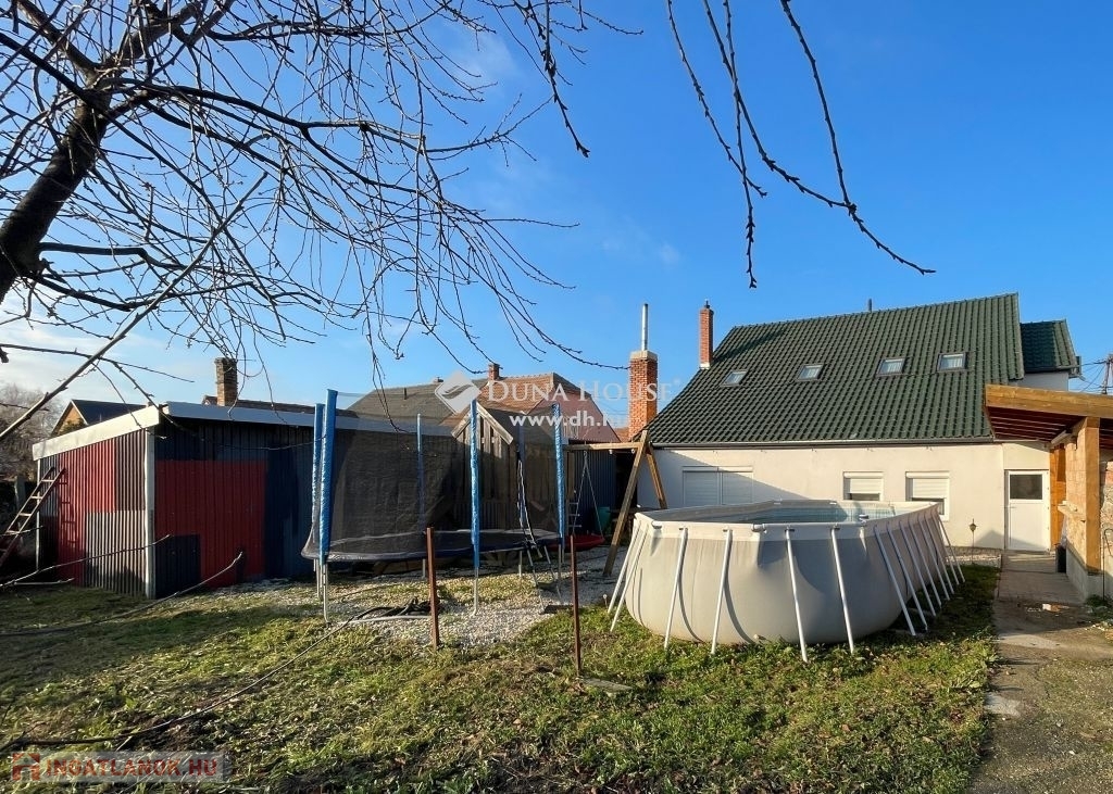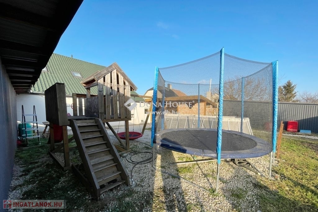 Az épület mögötti kert biztosítja a kikapcsolódást kicsinek és nagynak egyaránt... Van itt fedett terasz épített grillsarokkal (20 m2), gyermek játszótér, kerti medence és egy jókora tároló melléképület (40 m2). A telek 798 m2.