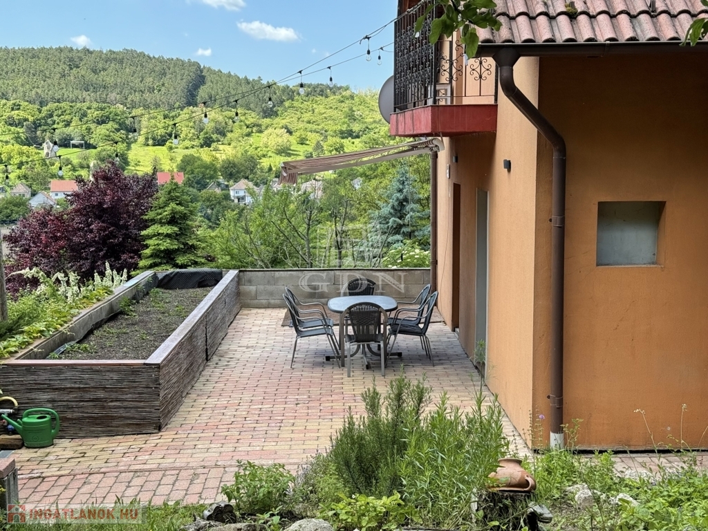 A ház közvetlenül a kiserdő szélén helyezkedik el, csendes, forgalomtól mentes utcában. A teraszról és az emeletről gyönyörű örökpanoráma nyílik a völgyre és a környező erdőkre.