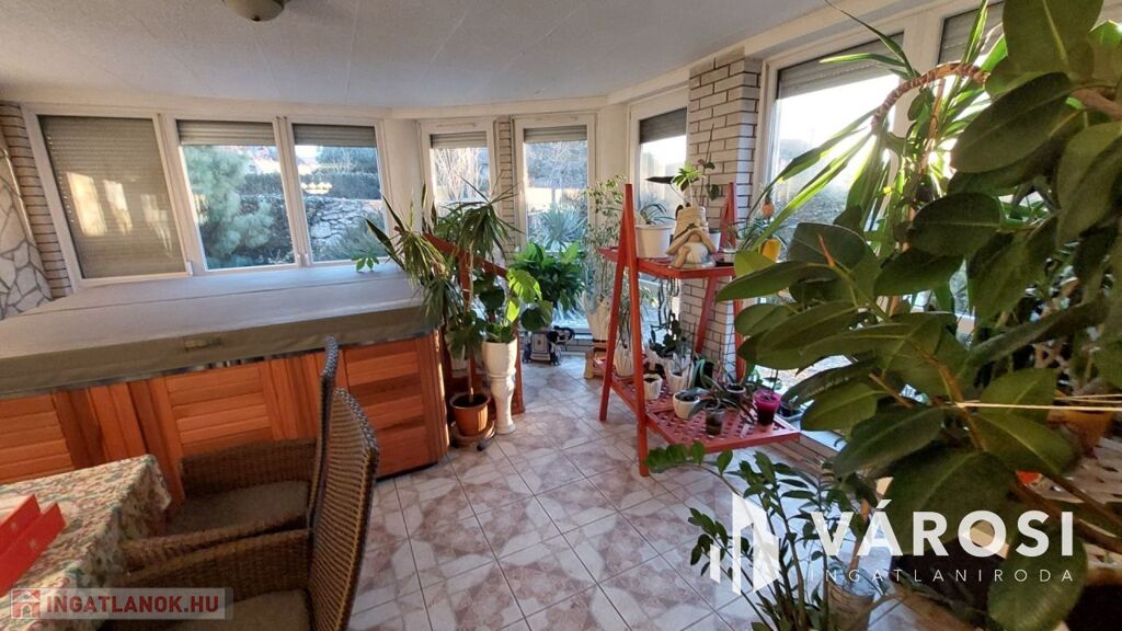 A két szintes, 200 m2-es családi házban földszinten és emeleten egy-egy nappali, fürdőszoba és hálószobák találhatók. A földszinti nappalihoz téli kert csatlakozik 8 személyes jakuzzival. Innen közvetlen kijárat nyílik a gondozott kertbe és az egyik teraszra. Az alsó lakótérhez kazánház és két garázs tartozik. Az emelet külön bejáraton keresztül is megközelíthető, így akár külön lakrész is lehet.