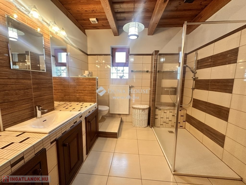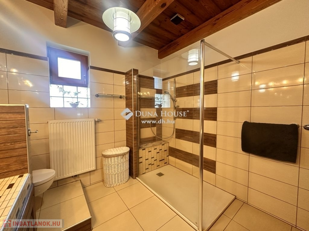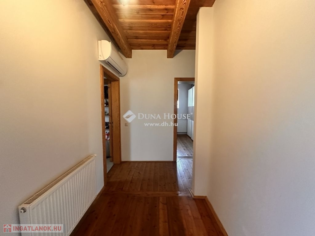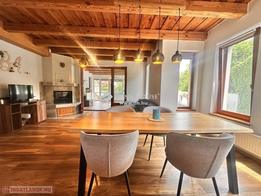 Az autentikus hangulatú családi háznak tégla falazata van melyen 10 cm-es hőszigetelés található. A nyílászárók fából készültek, az egész ház szigetelt fafödémes. A tető terrán cseréppel fedett. A házban 3 hálószoba, nappali, étkező, konyha, nagy fürdő WC-vel, előtér, közlekedő, ruhás és cipős gardrób, kazánház, lakásból nyíló fűtött garázs benne elkülönített mosó helyiség WC-vel, valamint egy nappalivá beépített korábbi terasz található. A konyha és a fürdőszoba 4 éve teljeskörűen átépítésre került. A melegvíz ellátását napkollektor+gázkazán biztosítja. A házat fűteni a nappaliban található vízteres kandallóval vagy gázkazánnal radiátoron és padlófűtésen keresztül lehet, illetve a ház hűtése-fűtése beépített klímával is megoldható. 4,6 kW-os napelem rendszer 2021-ben került telepítésre, amely bőségesen kielégíti a ház szükségleteit, ennek köszönhetően nincs áramszámla. A ház biztonságáról riasztó és 4 kamerás megfigyelő rendszer gondoskodik. Az ablakokon szúnyoghálók találhatók. Az udvar területén 36 m2-es garázs található, melyben 12 m2-es nyári konyha került kialakításra. A kényelmet fokozza az elektromos bejárati és garázskapuk. Az udvar első része parkosított melyen nyári kiülő is helyet kapott. A udvar hátulsó kb. 800 m2-es részén 3db autóbeálló/tároló, valamint gazdasági épületek (3 db angol box, tároló, szénatároló és fatároló) található.
