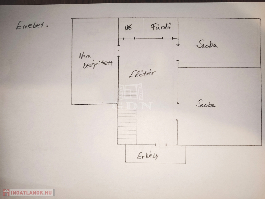 Felső szint: nappali erkéllyel, 2 szoba, fürdő és külön wc), valamint egy bárhogy kihasználható tetőtéri helyiség.