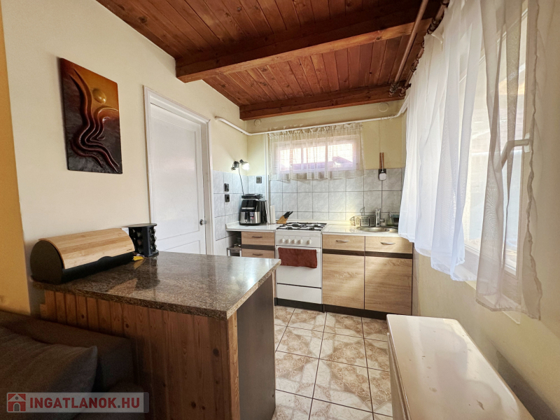 A 253 m2-es telek kis energiával rendben tartható. Egy autóval be lehet parkolni az udvarba.