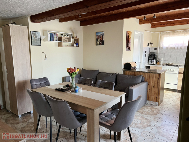 Vértes lábánál, Csákvár kedvelt lakórészén eladó egy 2 szobás, fedett teraszos családi ház.