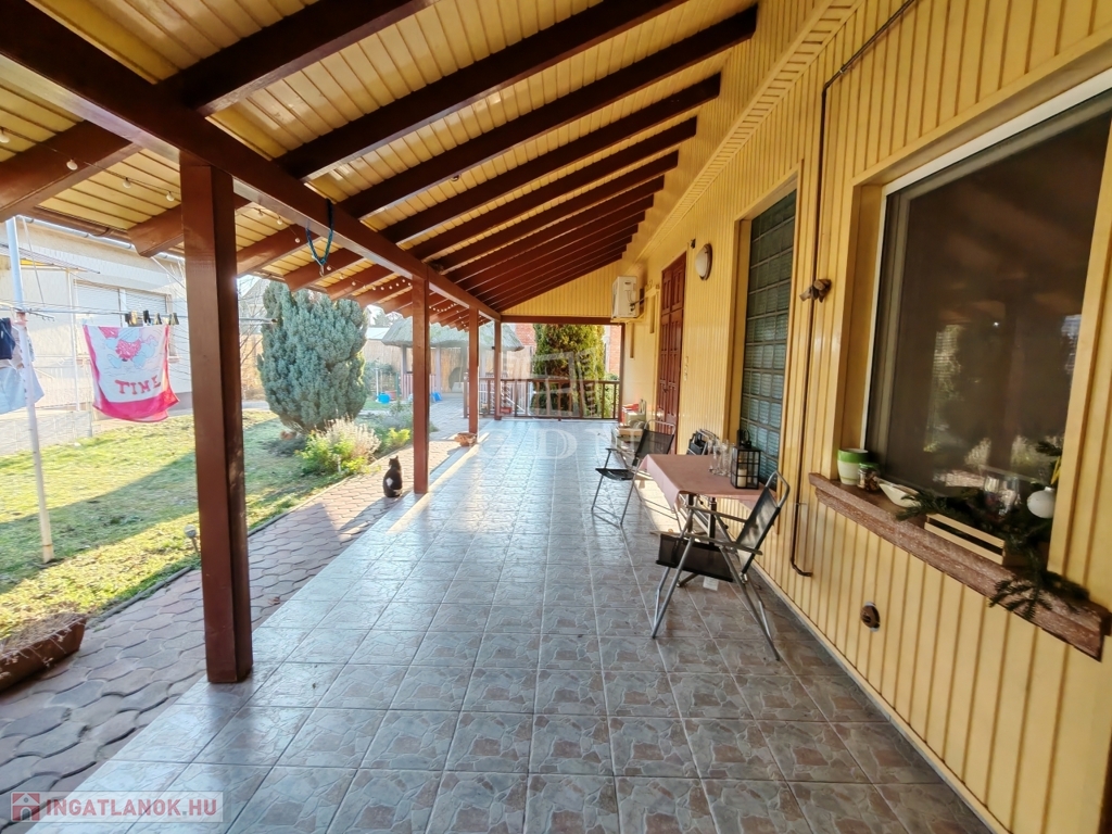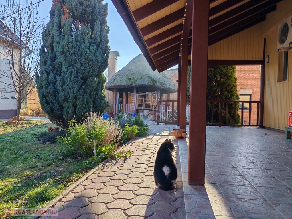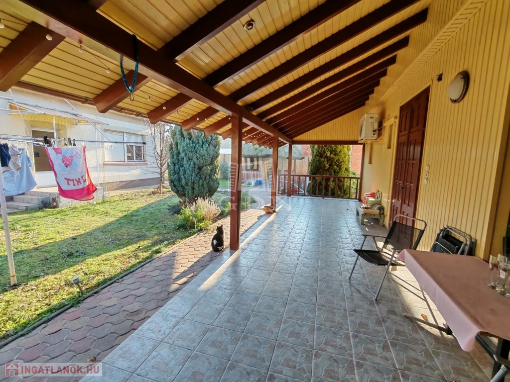 a hátsó zárt garázson keresztül is kijuthatunk. A telek hátsó részében állattartásra alkalmas ólak, valamint háztartási helységek és külső WC is található.