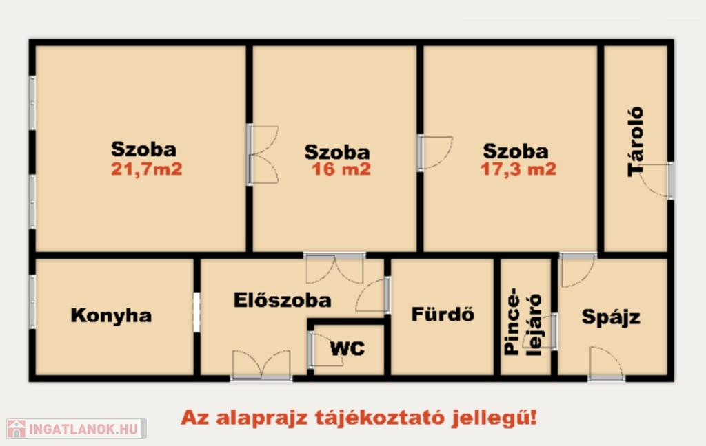 A masszív, vegyes falazatú ház fa, redőnnyel ellátott ablakokkal és tartós cserépfedésű tetővel rendelkezik. A fűtésről gázkonvektorok, kályha és hűtő–fűtő GREE klíma gondoskodik, a melegvizet gázbojler biztosítja. Az ingatlanban 3 szoba, tágas konyha, előszoba, fürdőszoba (2025-ben felújítva), külön WC, spájz és tároló található.