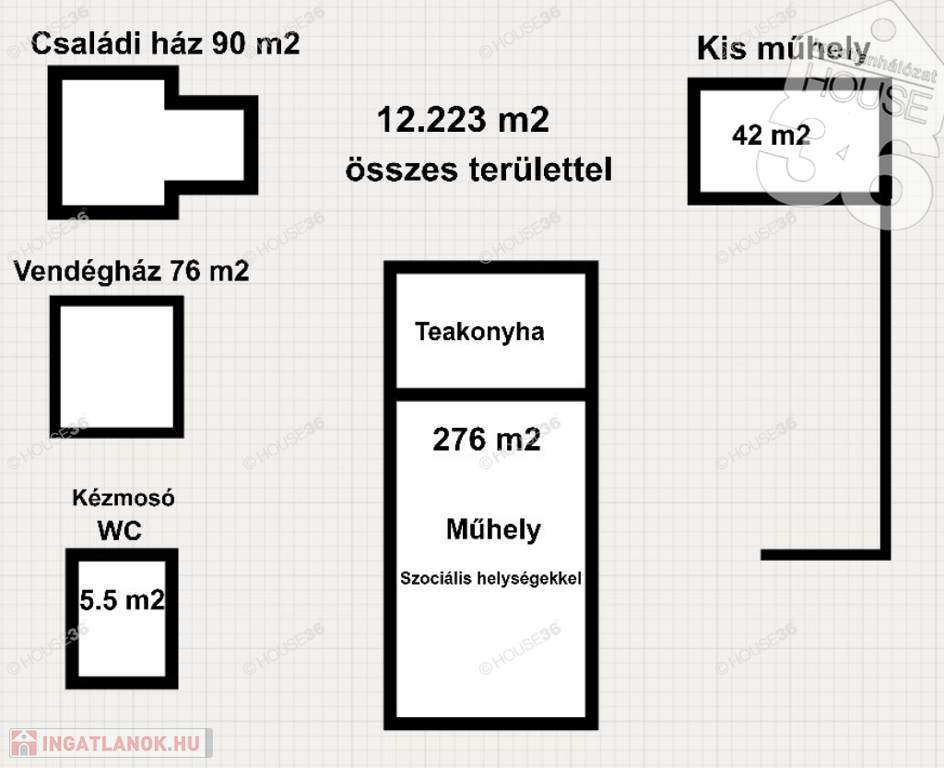 18040 m2-es területen kis üzem, szerelő műhely vagy raktárnak is kiváló, lakóházakkal, bekerített területtel eladó.