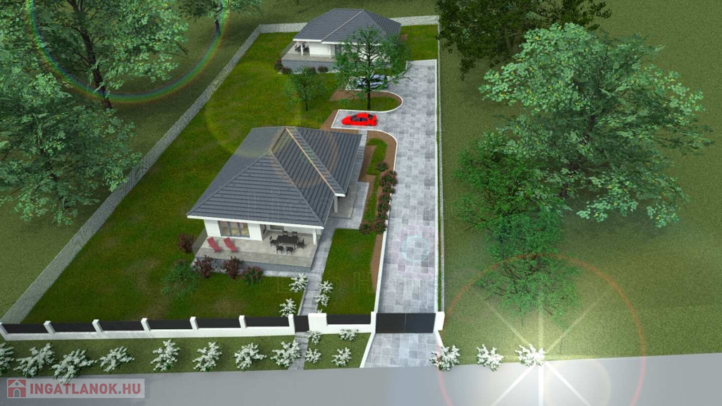Egy telken 2 db ház lett felépítve, csak a bejárat közös. A házak várható átadása szerkezetkész állapotban szerződéskötést követően akár azonnal, kulcsrakész állapotban szerződéskötés után kb. 3 hónappal várható