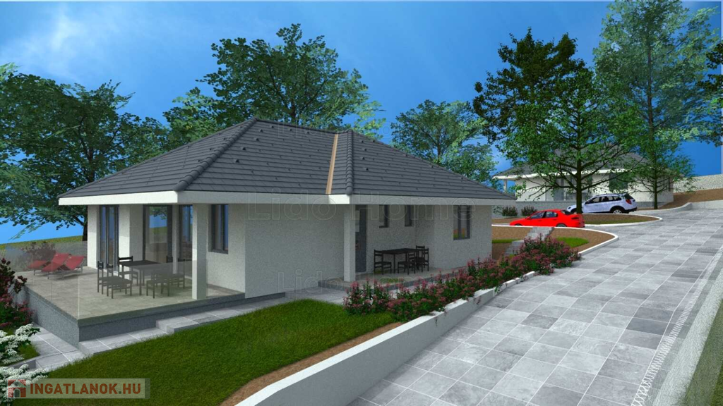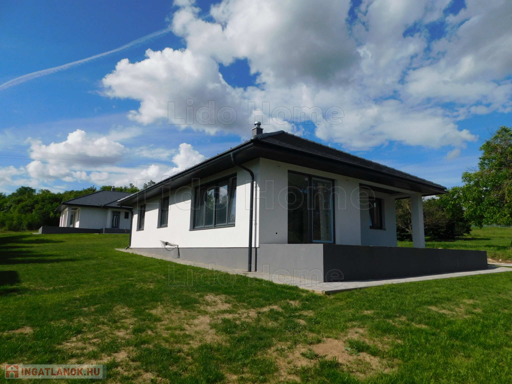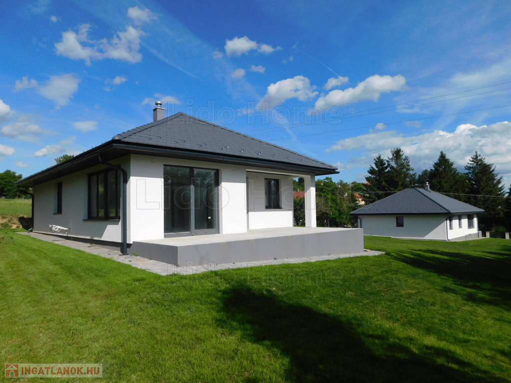 Egyszintes, 129 nm-es CSALÁDI HÁZ nagy nappalival, 3 hálószobával, részben fedett teraszokkal eladó.