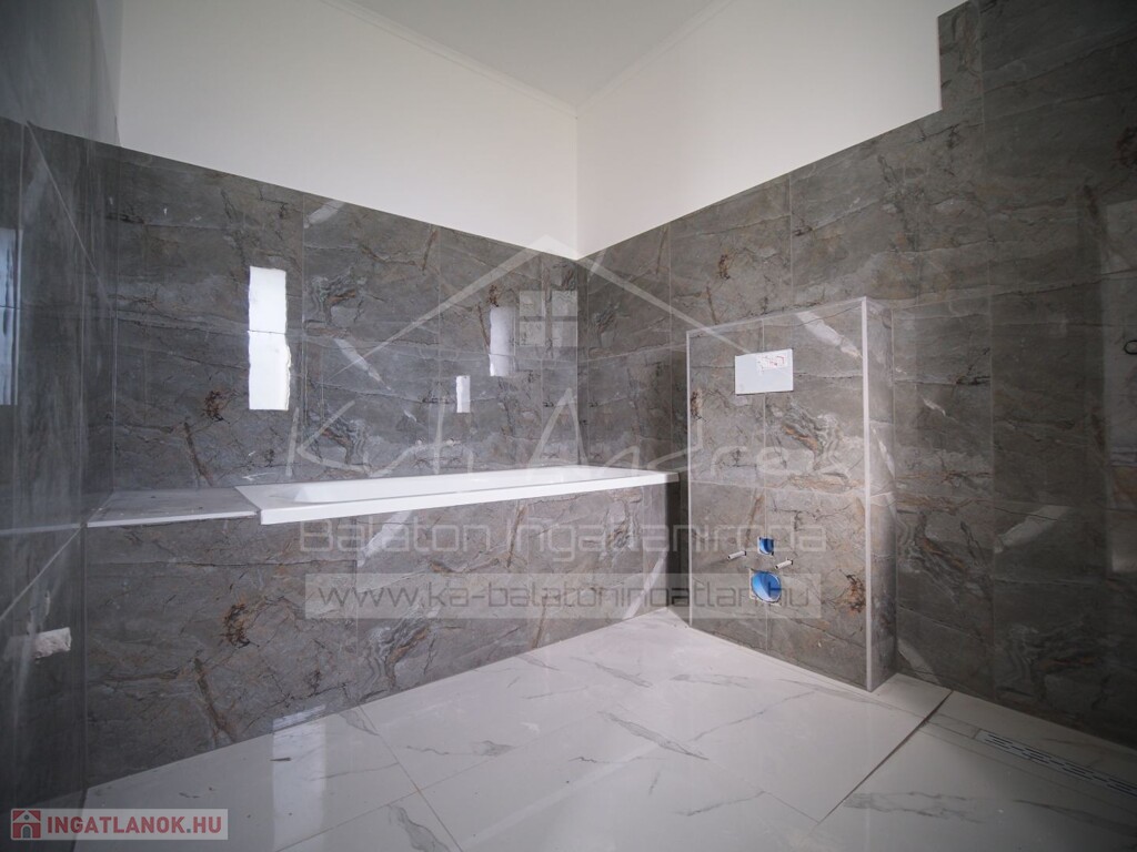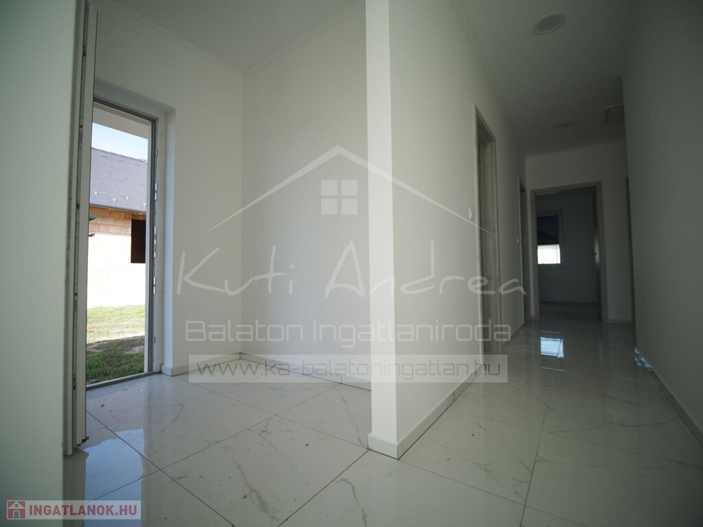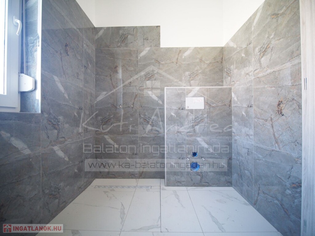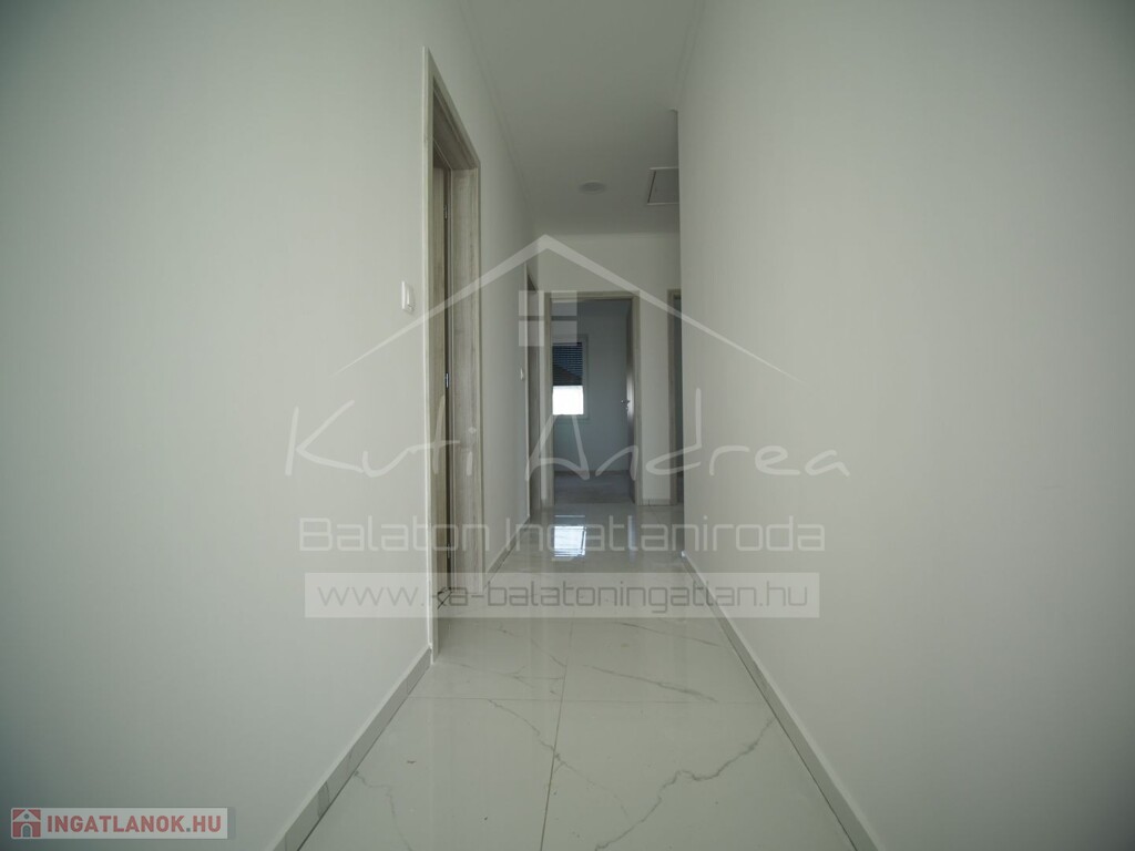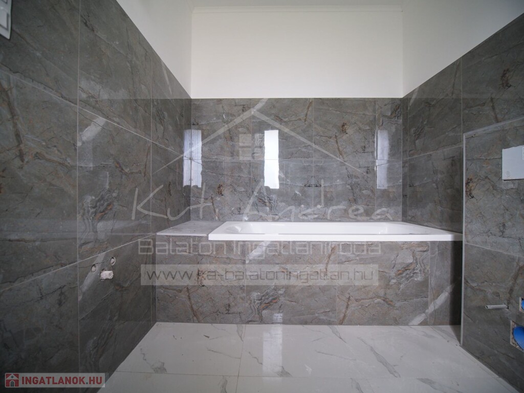 • Elrendezése: 1 előtér, 1 amerikai konyhás nappali étkezővel, 2 szoba, 1 közös fürdővel (tusolós, toalettel), 1 szülői hálószoba saját fürdővel (kád és tusoló, toalettel), 1 mosókonyha/gépház, folyosó, 1 terasz, melyről lehet látni még a Balatont is.