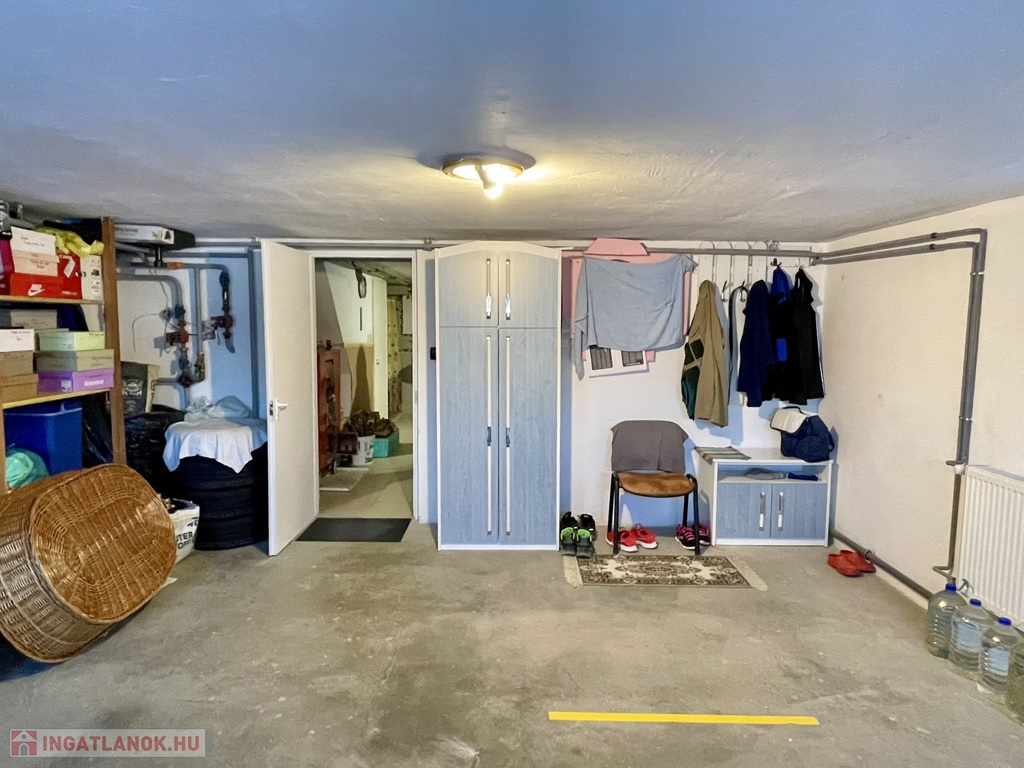 A szuterén szinten két külön bejáratú garázs, kazánház (kondenzációs gázkazán + fatüzelésű kazán), fatároló, kamra, valamint tusoló és kézmosó található.