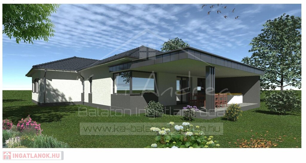 • Az ingatlant földszintesre tervezték, melynek födéme szigetelt, valamint a padlás feletti tetőrész Creaton cserépfedést fog kapni.