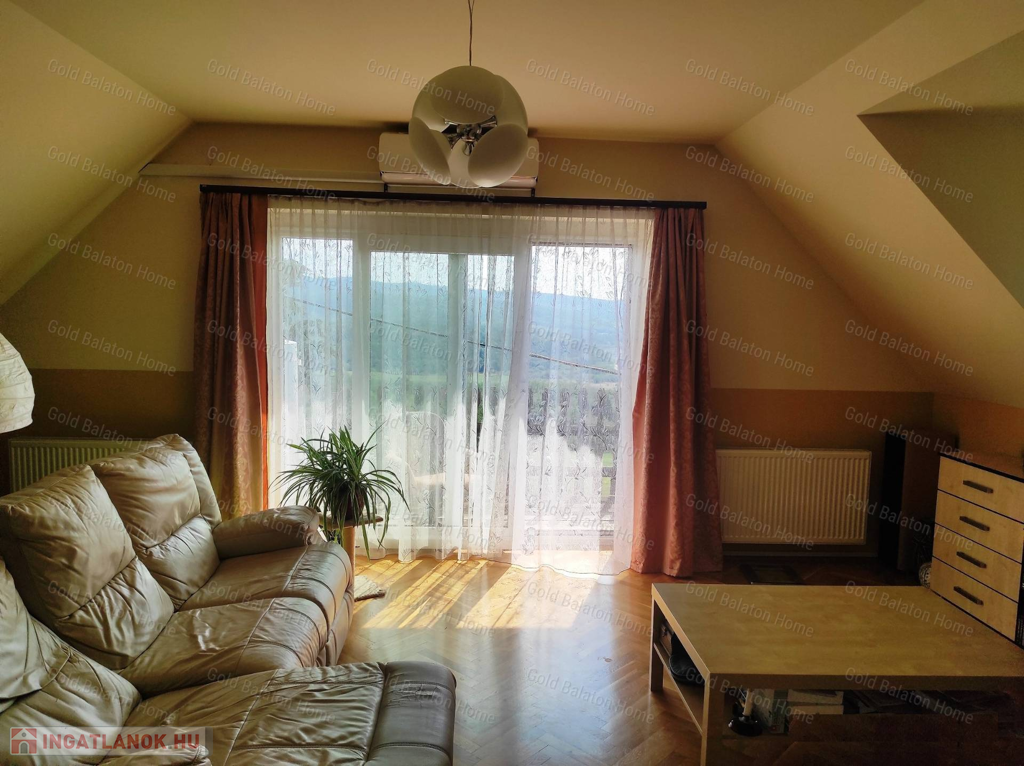 Balatoni panorámás, kétszintes CSALÁDI HÁZ 1 nappalival, 4 hálószobával, 2 fürdőszobával, erkéllyel, terasszal, nagy boltíves pincével eladó.
