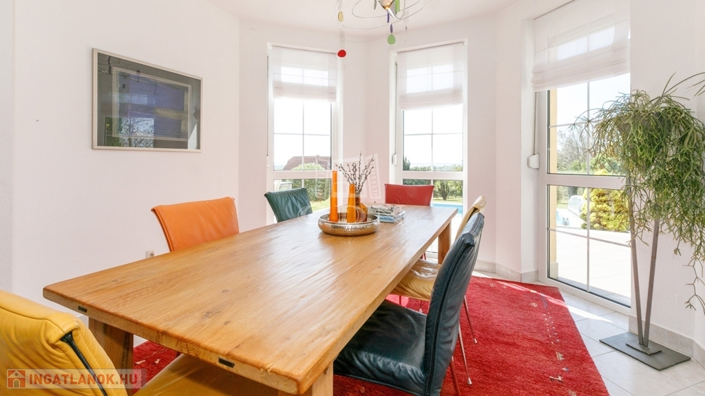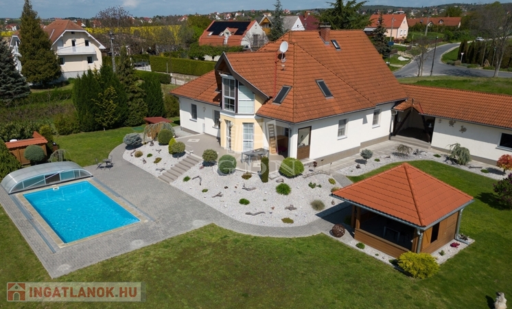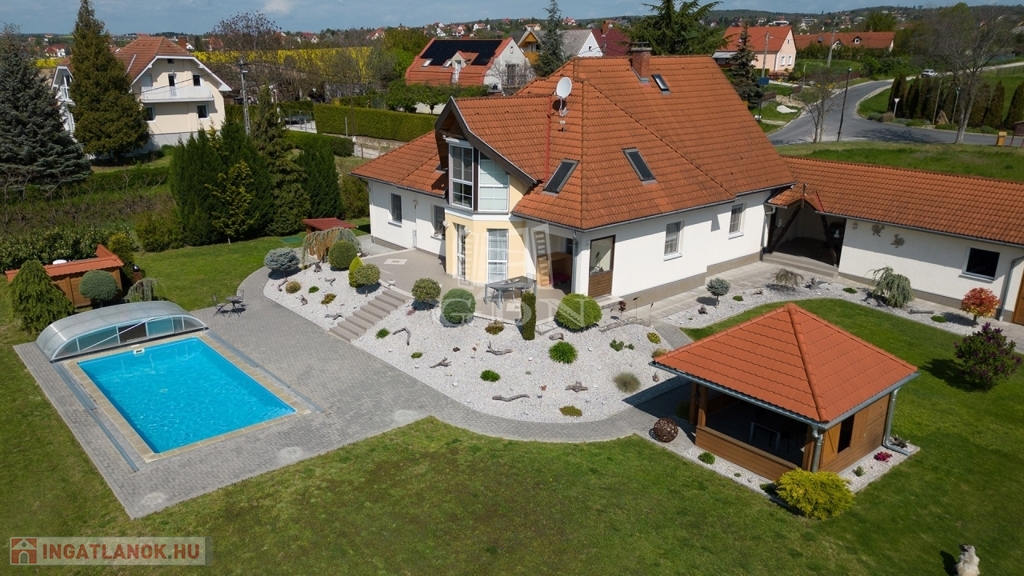 Eladó Cserszegtomajon ez a 335 m²-es, 2000-ben épült családi ház, kiváló állapotban. A lakóházból és a teraszról gyönyörű panoráma nyílik a Balaton irányába.