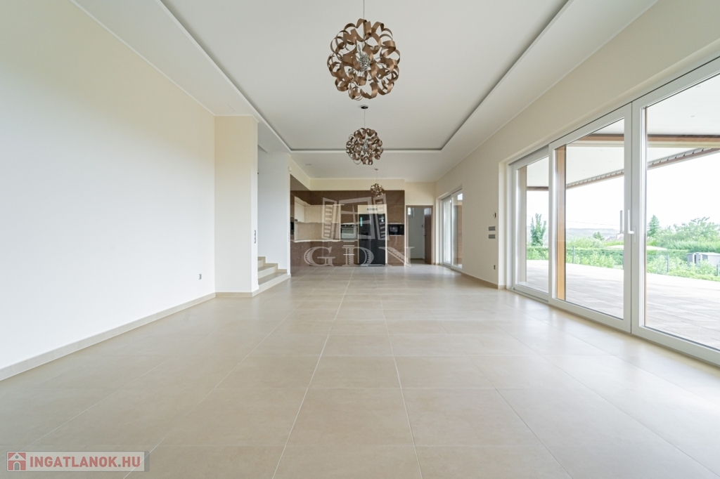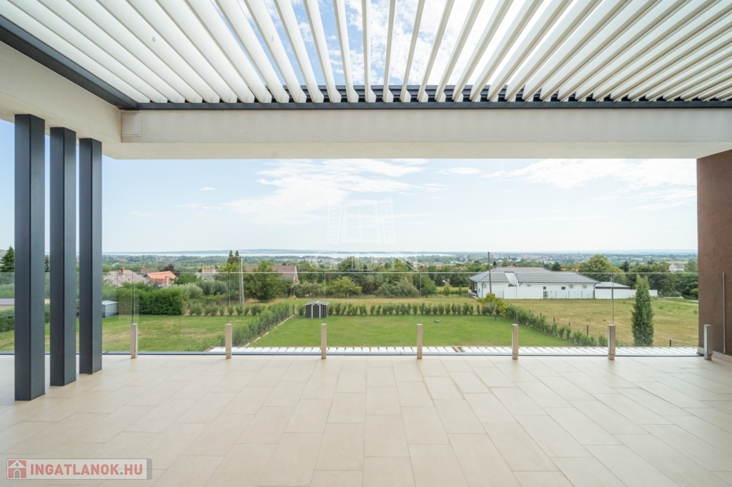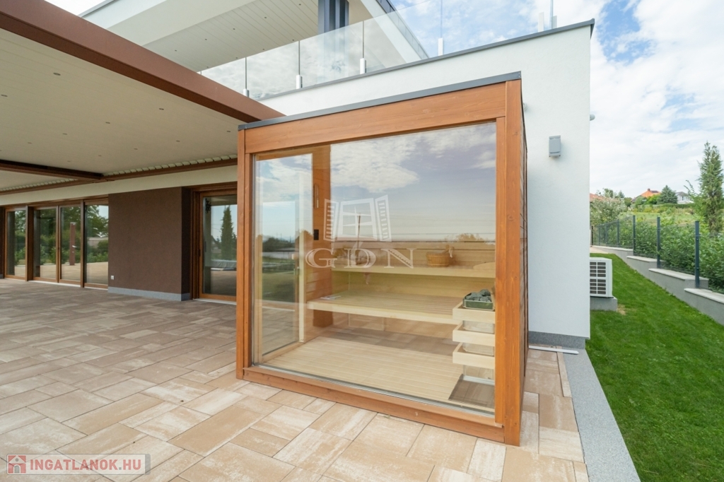 HATALMAS, nyitott terek, tágas helyiségek, IMPOZÁNS ÜVEG FELÜLETEK biztosítják a LUXUS életérzést és a csodálatos kilátást a Balatonra és az őt körülölelő tájra a ház minden pontjából!