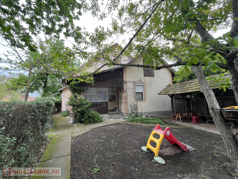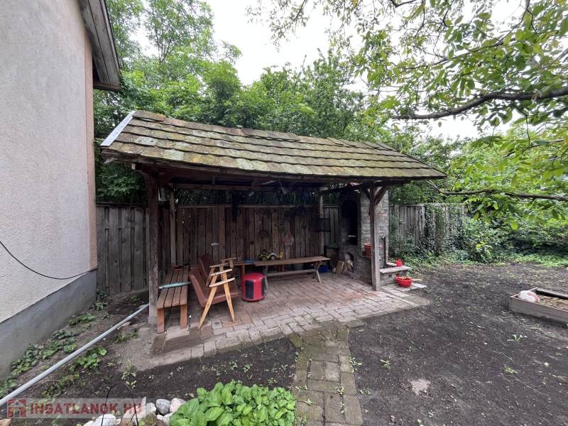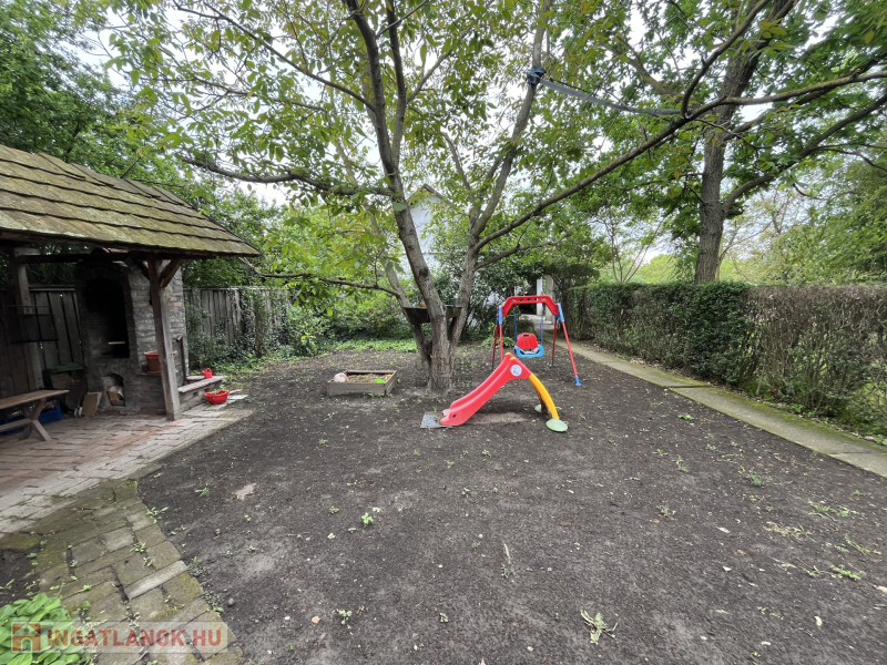 A 2425 m²-es, teljesen körbekerített, parkosított udvar igazi zöld oázis: fúrt és ásott kút, szerelőaknás garázs, melléképületek, és még egy hangulatos kerti konyha is a Tiétek lehet!