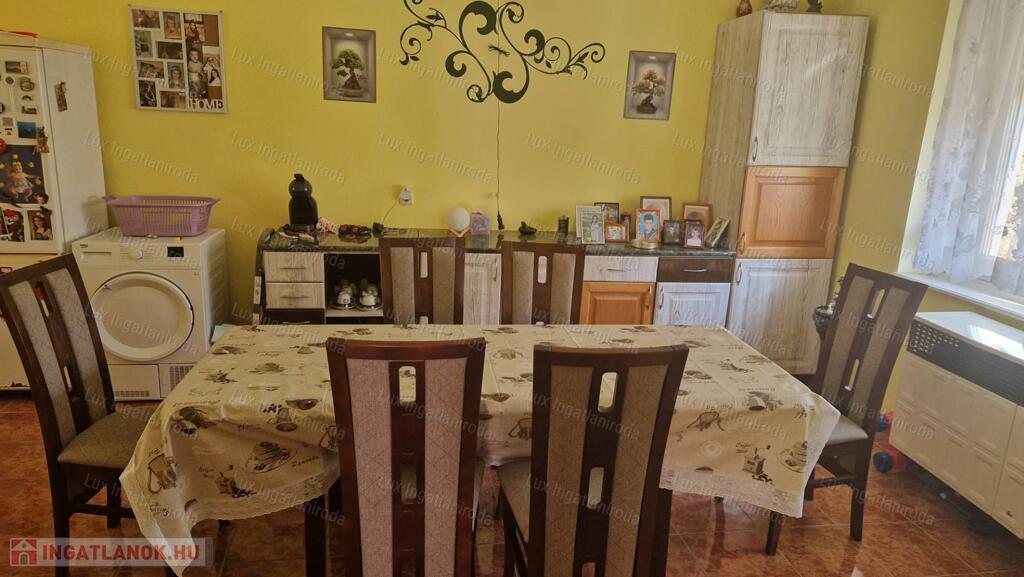 A házban előszoba, fürdő, 3 félszoba, nappali, étkező-konyha, kamra található, az udvaron melléképületek és pince.