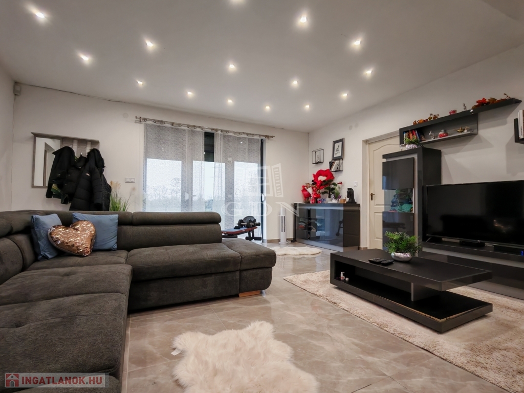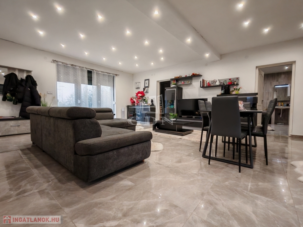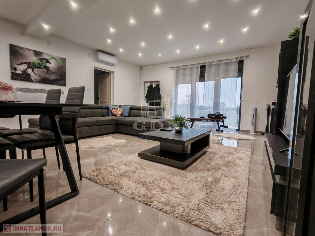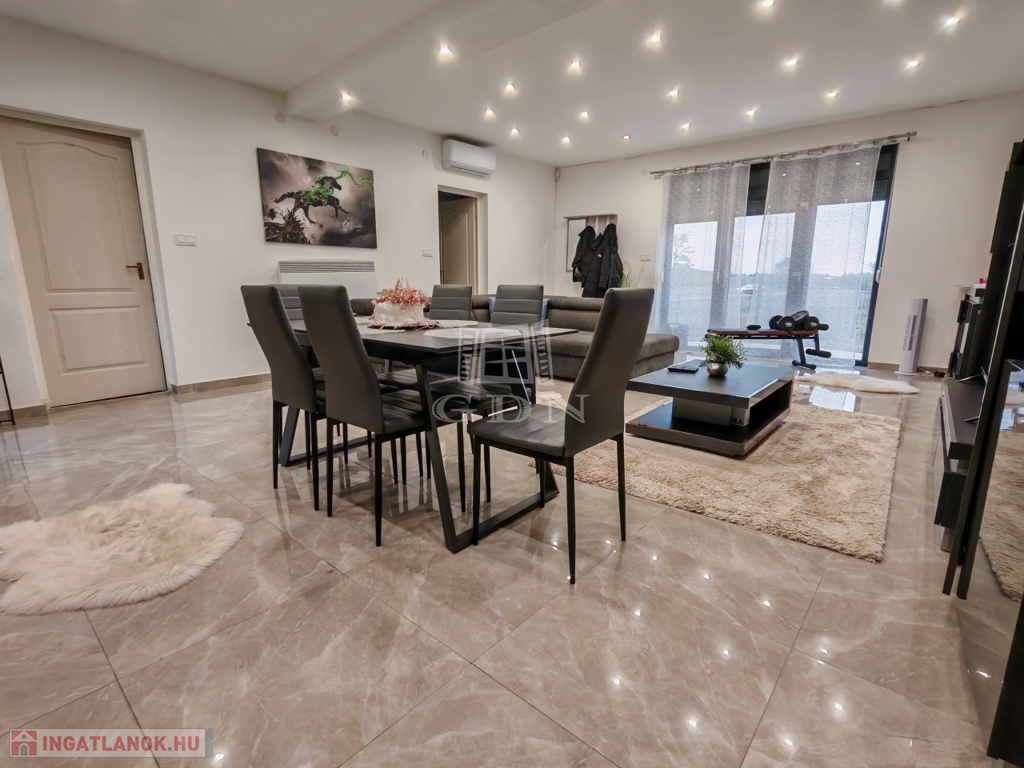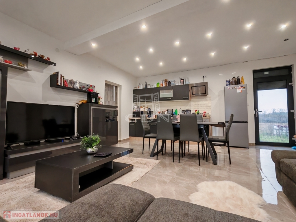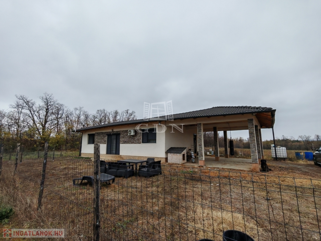 A több mint 2,5 hektáros lenyűgöző szántóföld, melyből 880 m² ki lett véve művelési ág alól így ezen a területen 2020-ban épült, 94 m²-es amerikai konyhás nappali, 2 hálószobás, nagy teraszos családi ház.
